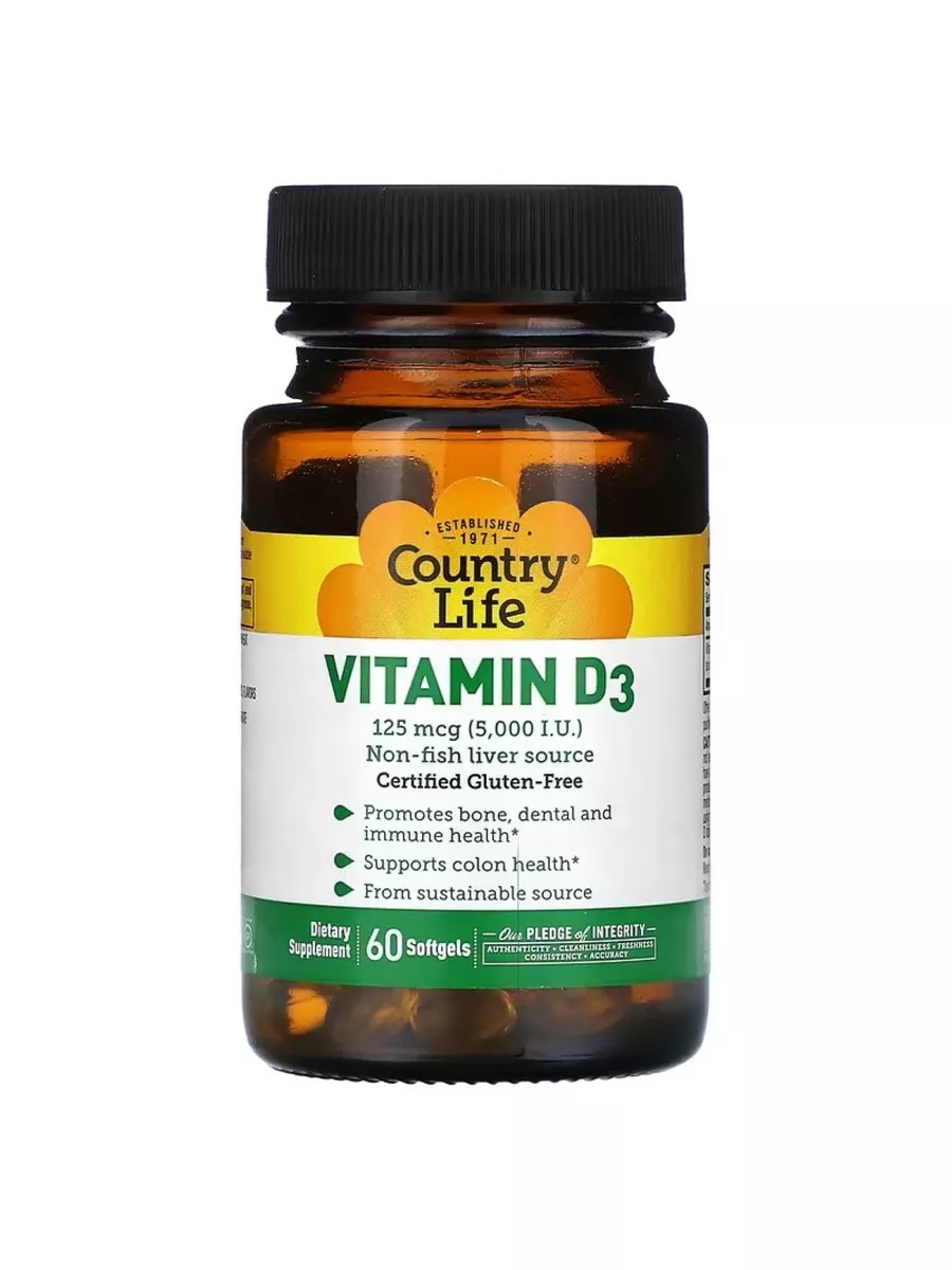 Country Life Витамин D3 125 мкг 5 000 МЕ, 60 штук