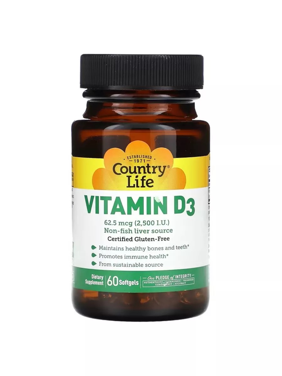 Country Life Витамин D3 62,5 мкг 2500 МЕ , 60 штук