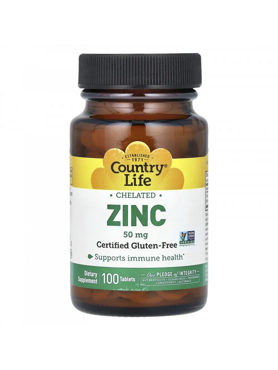 Country Life Zinc Chelated 50 mg - Хелатный цинк, 100 таб