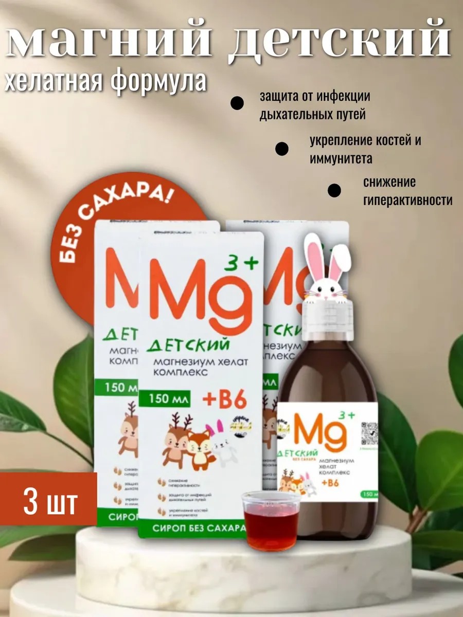 | Комплектация | 3 упаковки сиропа магния по 150 мл |