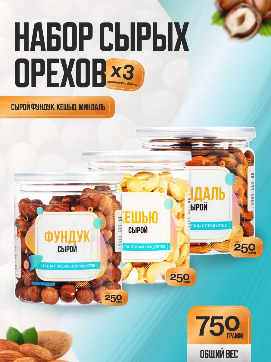 Страна Полезных Продуктов Набор сырых орехов 750гр, 3 банки по 250гр