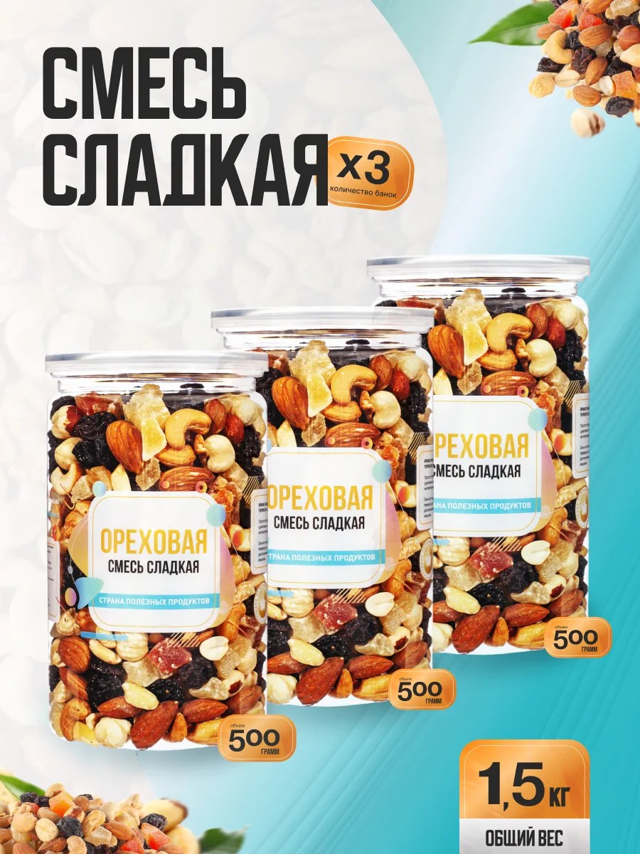 Страна Полезных Продуктов Ореховая смесь сладкая 1,5кг (3 банки по 500гр)
