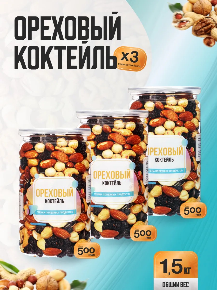 Страна Полезных Продуктов Ореховая смесь "Ореховый коктейль" 1,5кг (3 банки по 500гр)