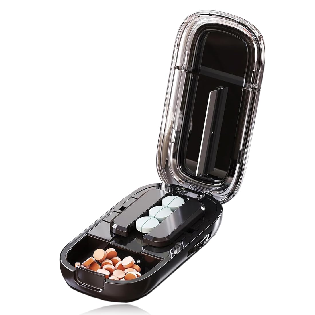 High-quality materials: Part of the box is made of food-grade ABS material, which is safe for direct contact with medication. The stainless steel blade is wear-resistant and corrosion-resistant, providing a precise and clean cut. Pill cutter: Our precision pill cutter can cut multiple pills at once, saving you considerable time and energy. Say goodbye to the hassle of cutting multiple pills. Our pill cutter comes with a brush and tweezers for easy use and cleaning. Small and portable: The pill cutter is palm-sized and compact. You can easily carry it with you and put it in your bag. It's easy to store and doesn't take up much space. It is very suitable for leisure, business, travel, the office, and everyday use. Easy to use: simply insert the pills into the pill crusher, turn the gears to adjust the size, ensure the pills are centered, and press down on the lid to easily cut the pills. The pill crusher has a storage compartment for the pills for easy storage. The pill cutter is easy to carry, perfect for administering pills on the go, and fits easily in a purse or pocket. Durable and safe: the blade of this pill cutter is made of high-quality stainless steel, which does not rust easily and can remain sharp for a long time. The blade of the professional pill cutter will not be exposed only the blade guard will be visible when using the pill cutter. You don't have to worry about cutting your fingers during use, ensuring your finger safety.Durable and safe: The blade of this pill cutter is made of high-quality stainless steel, which won't rust easily and will stay sharp for a long time. The blade of the professional pill cutter will not be exposed only the blade guard will be visible during use. You don't have to worry about cutting your fingers, ensuring your safety. Easy to use: Simply insert the pills into the pill cutter, turn the gears to adjust the size, make sure the pills are centered, and press down on the lid to easily cut them. The pill cutter has a storage compartment for the pills for easy storage. The pill cutter is easy to carry, perfect for administering pills on the go, and fits easily in a purse or pocket. Small and portable: The pill cutter is palm-sized and has a compact design. You can take it with you and easily put it in your bag. It's easy to store and doesn't take up much space. It's perfect for leisure, business, travel, the office, and everyday use. Pill cutter: Our precision pill cutter can cut multiple pills at once, saving you significant time and energy. You can say goodbye to the hassle of cutting more pills. Our pill cutter comes with a brush and tweezers for easy use and cleaning. High-quality materials: Part of the box is made of food-grade ABS material, which is safe for direct contact with medication. The stainless steel blade is wear-resistant and corrosion-resistant, providing a precise, clean cut.Matériaux de haute qualité : une partie de la boîte est fabriquée en matériau ABS de qualité alimentaire, qui peut entrer en contact direct avec les médicaments et est 100 sûr. Lame en acier inoxydable, résistante à l'usure et à la corrosion, coupe précise et nette, propre Coupe-pilules : notre coupe-pilules de précision peut couper plusieurs pilules à la fois, ce qui vous permet d'économiser considérablement votre temps et votre énergie. Vous pouvez dire adieu au souci de couper davantage de pilules. Notre coupe-pilule est livré avec une brosse et une pince à épiler pour une utilisation et un nettoyage faciles Petit et portable : le coupe-médicaments a la taille d'une paume et possède une structure compacte. Vous pouvez l'emporter avec vous et le mettre facilement dans votre sac. Il est facile à ranger et ne prend pas de place. Il est très adapté aux loisirs, aux affaires, aux voyages, au bureau et à l'utilisation quotidienne Facile à utiliser : insérez simplement les pilules dans le broyeur de pilules, tournez les engrenages pour ajuster la taille, assurez-vous que les pilules sont placées au centre et appuyez sur le couvercle, pour couper facilement les pilules, le broyeur de pilules de médicaments a un endroit pour stocker les pilules pour un rangement facile, le coupe-pilule est facile à transporter, parfait pour administrer des pilules en déplacement et se glisse dans un sac à main ou une poche Durable et sûr : la lame de ce coupe-pilule est fabriquée en acier inoxydable de haute qualité, ne rouille pas facilement et peut rester tranchante pendant longtemps. La lame du coupe-comprimés professionnel ne sera pas exposée, seule la protection de la lame sera exposée lors de l'utilisation du coupe-comprimés, vous n'avez pas à vous soucier de vous couper les doigts lors de l'utilisation, pour assurer la sécurité de vos doigtsDurable et sûr : la lame de ce coupe-pilule est fabriquée en acier inoxydable de haute qualité, ne rouille pas facilement et peut rester tranchante pendant longtemps. La lame du coupe-comprimés professionnel ne sera pas exposée, seule la protection de la lame sera exposée lors de l'utilisation du coupe-comprimés, vous n'avez pas à vous soucier de vous couper les doigts lors de l'utilisation, pour assurer la sécurité de vos doigts. Facile à utiliser : insérez simplement les pilules dans le broyeur de pilules, tournez les engrenages pour ajuster la taille, assurez-vous que les pilules sont placées au centre et appuyez sur le couvercle, pour couper facilement les pilules, le broyeur de pilules de médicaments a un endroit pour stocker les pilules pour un rangement facile, le coupe-pilule est facile à transporter, parfait pour administrer des pilules en déplacement et se glisse dans un sac à main ou une poche. Petit et portable : le coupe-médicaments a la taille d'une paume et possède une structure compacte. Vous pouvez l'emporter avec vous et le mettre facilement dans votre sac. Il est facile à ranger et ne prend pas de place. Il est très adapté aux loisirs, aux affaires, aux vo