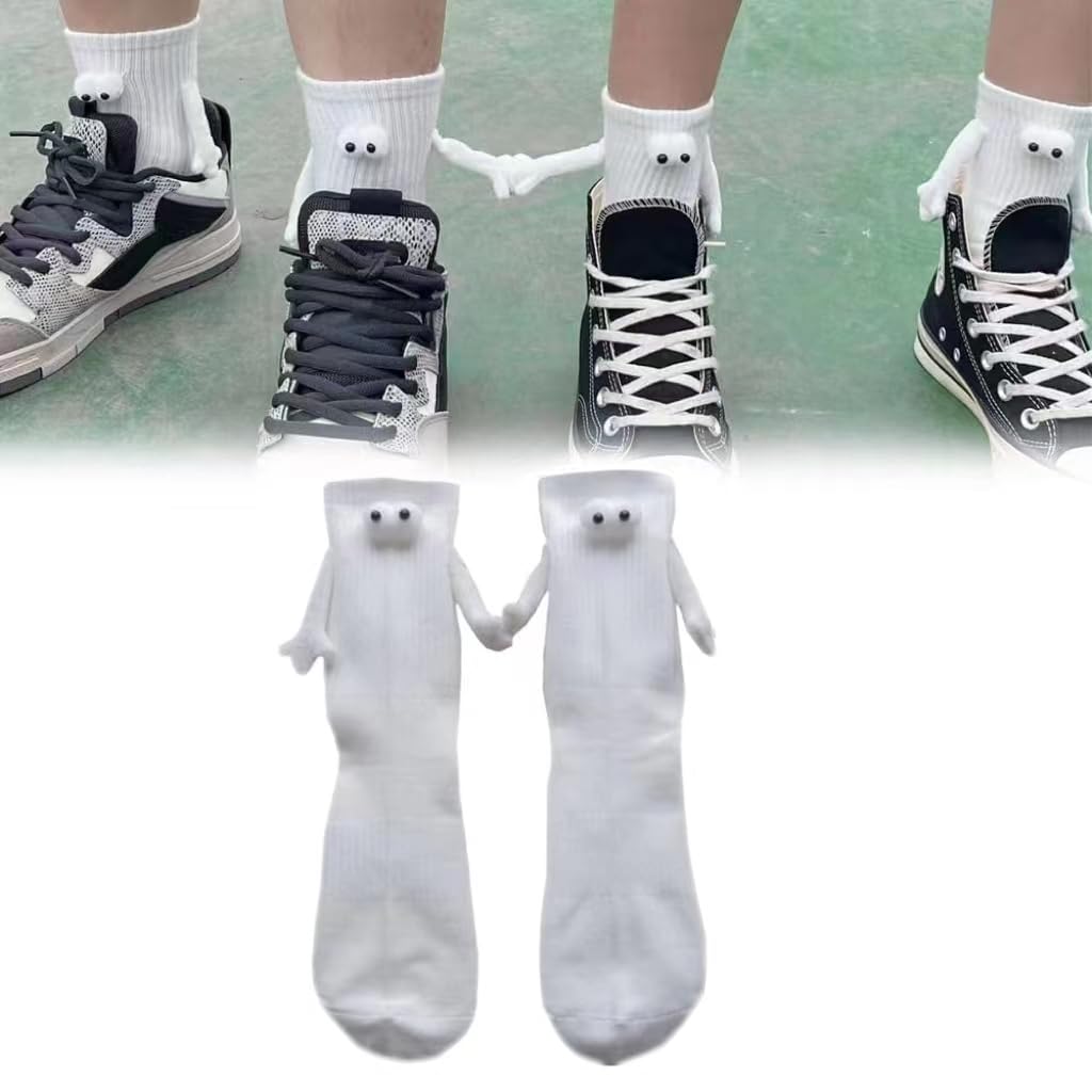 Couple Holding Hands Socks Mid-Tube Socks Magnetic Three-Dimensional Doll Socks Funny Magnetic Suction ​3D Doll Socks (White)