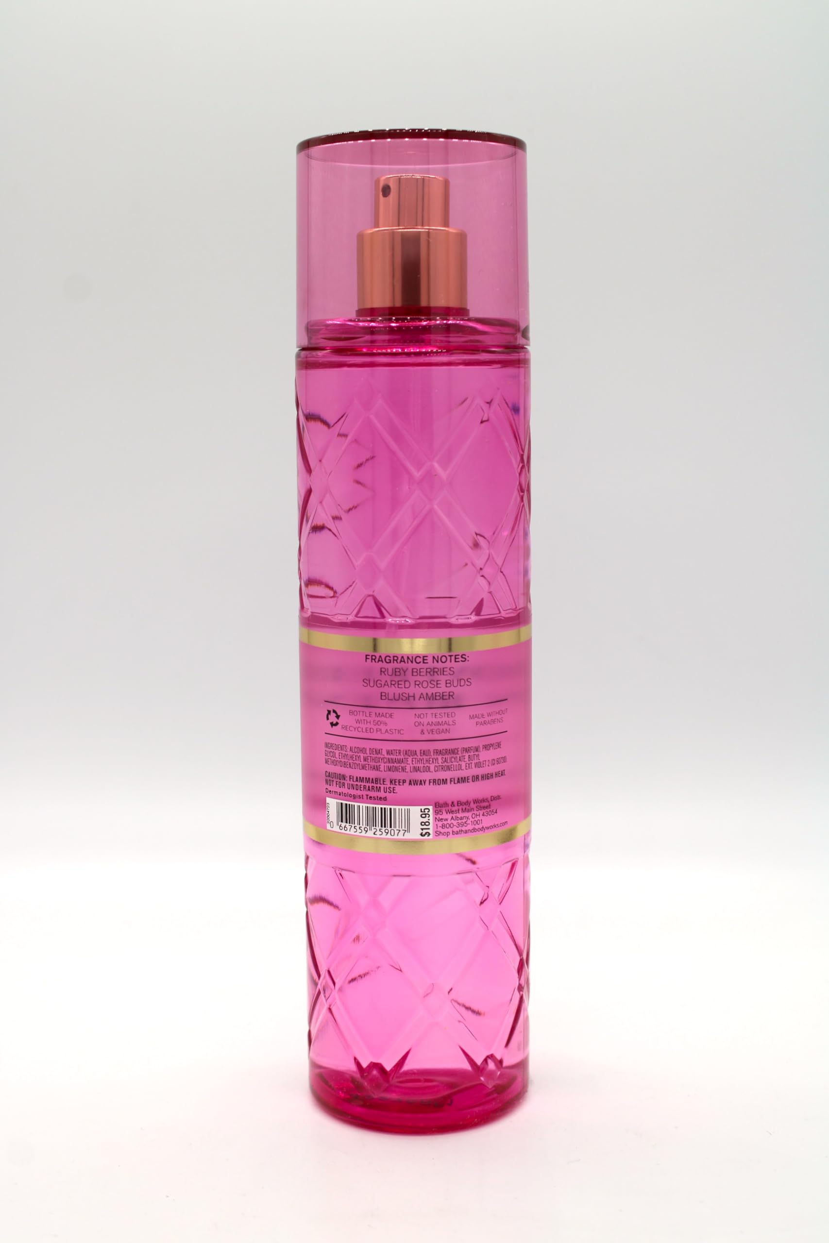 Not Tested on Animals & Vegan / Made without Parabens / Dermatologist Tested. Size: 8 fl oz (236 mL). Fragrances Notes: Ruby Berries, Sugared Rose Buds, Blush Amber. Fragrance: Coveres in Roses.