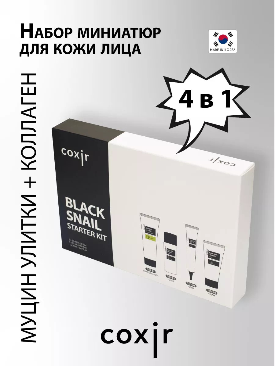 COXIR Набор миниатюр с муцином черной улитки, Корея, 4 шт