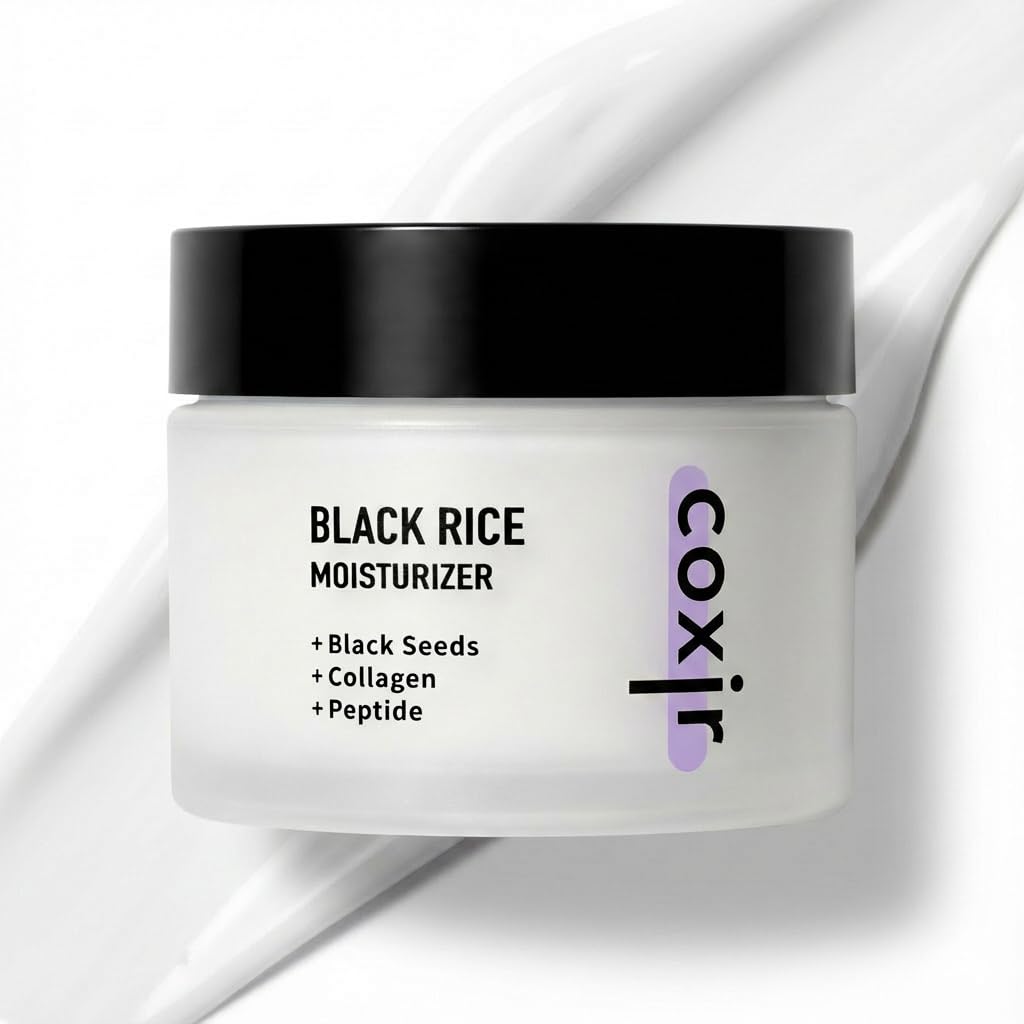coxir Black Rice Moisturizer Face Cream Hydrating Korean Moisturizer with Niacinamide Collagen & Peptide Complex Radiance Barrier Support Lightweight Non-Greasy(1.69 fl oz)
