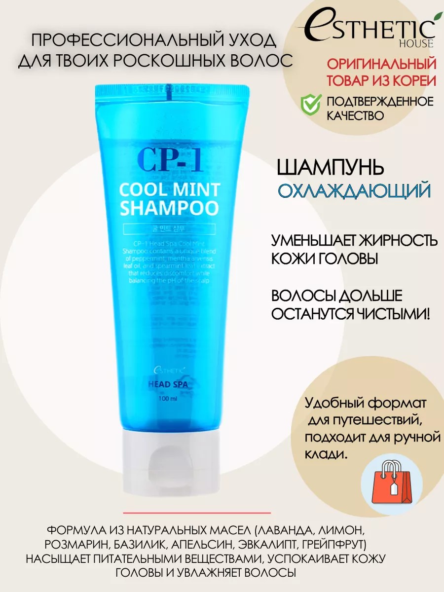 100% ОРИГИНАЛ. Являемся официальным представителем бренда Esthetic House. Охлаждающий корейский шампунь с мятой, для жирных и нормальных волос, женский, бессульфатный, для ежедневного использования, от перхоти CP-1 Head Spa Cool Mint, Корея- 100 мл. Эффективно очищает кожу головы и волосы от загрязнений и себума. Ментол, масло и экстракты мяты тонизируют кожу головы, улучшают кровообращение, оказывают противовоспалительное действие и уменьшает излишнюю жирность кожи головы. Формула из натуральных масел (лаванда, лимон, розмарин, базилик, апельсин, эвкалипт, грейпфрут) насыщает питательными веществами, успокаивает кожу головы и увлажняет волосы. Комплекс из аминокислот восстанавливает поврежденные участки волоса, делая локоны мягкими и послушными. Бессульфатный.