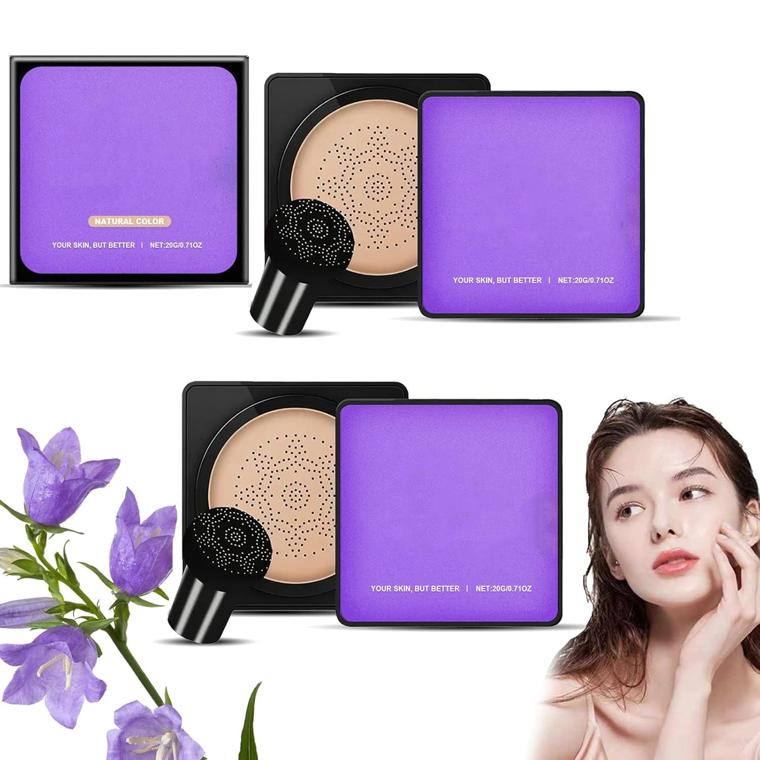Crème CC Champignon Coussin d'Air, Peau impeccable et éclatante instantanément, Anti-cernes hydratant waterproof et anti-sébum, Toucher léger, Maquillage parfait 2 Natural