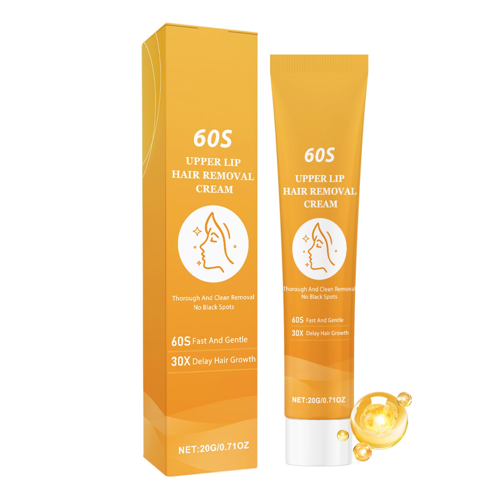 : EONFAVE Facial Hair Remover for Women, Effective Facial Hair Removal Cream, for Fast, Gentle, and Effective Upper Lip Hair Removal, Upper Lip Hair Removal Cream. Net Contents: 20g. Features of the Women's Beard Remover: ? Fast hair removal in 60 seconds. Gentle and non-irritating. Contains moisturizing ingredients. Prevents hair growth. Suitable for all facial hair types. Can also be used on hands, feet, underarms, and other body parts. Directions for Use: Cleanse your face and apply an appropriate amount of product to the area to be treated. Wait 60 seconds. For thicker hair, it is recommended to wait longer. Rinse with water and dry. Tips: Perform a patch test before using this product. Discontinue use if you experience discomfort or an abnormal skin reaction. Do not apply to wounds, eczema, or other abnormal areas of skin. store in a cool place away from light and direct sunlight. Directions: Cleanse your face and apply an appropriate amount of product to the area to be treated. Wait 60 seconds. For thicker hair, it is recommended to wait longer. Rinse with water and dry. Safety Warning No. See more