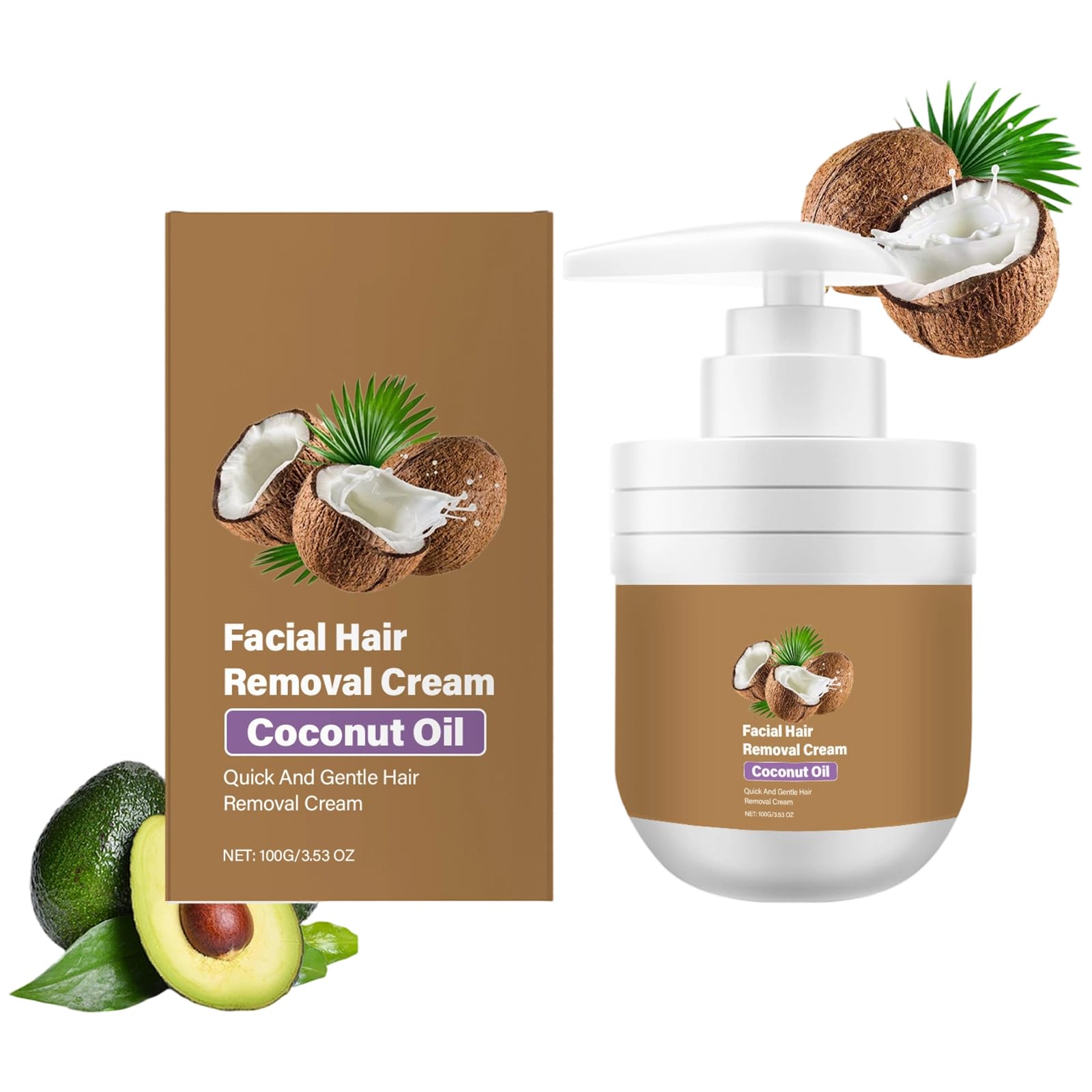 Crème dépilatoire visage, crème dépilatoire visage à l'huile de coco pour la lèvre supérieure, le menton,douce, rapide, efficace et indolore pour une peau lisse (1pcs)