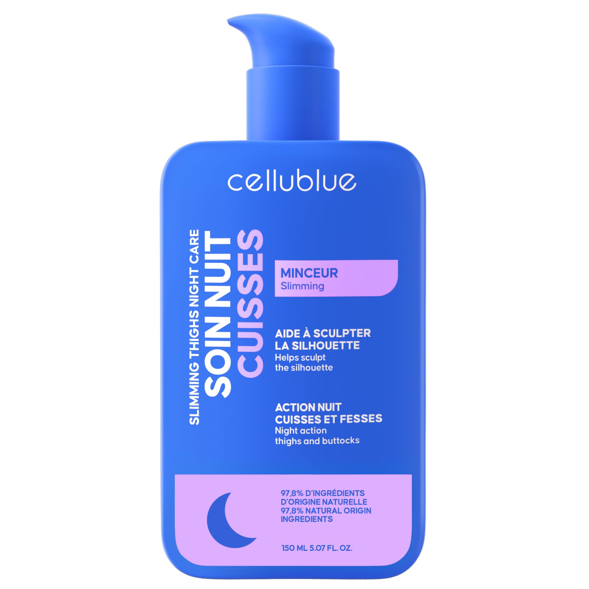 : Unleash the full potential of your nights to sculpt your thighs! Cellublue Night Slimming Thigh Cream works in a targeted way while you sleep to support fat elimination and tighten skin. Its formula, composed of 97.8 naturally derived ingredients, is enriched with plant extracts known for their slimming and moisturizing properties. Thanks to this nighttime action, your body takes advantage of its recovery phase to fully absorb the slimming active ingredients, while maintaining your skin's elasticity. Simply apply the cream before going to bed and let it work its magic: you'll already feel a difference when you wake up! Thighs become firmer and appear visibly slimmer. For over 12 years, the French brand Cellublue has relied on its expertise and its community of over one million users to offer effective slimming solutions that are easy to integrate into your daily routine. With this cream, you can enjoy a simple routine and powerful care for refined thighs… even with your eyes closed! Ingredients: AQUA, GLYCERIN, HELIANTHUS ANNUUS SEED OIL, C15-19 ALKANE, GLYCERYL STEARATE CITRATE, CARBOMER, GLYCINE SOJA (SOYBEAN) OIL, PARFUM, SODIUM BENZOATE, BUTYLENE GLYCOL, POTASSIUM SORBATE, SODIUM HYDROXIDE, PENTYLENE GLYCOL, ZINGIBER OFFICINALE (GINGER) ROOT EXTRACT, CITRUS AURANTIUM AMARA (BITTER ORANGE) FLOWER EXTRACT, TOCOPHEROL, LECITHIN, ASCORBYL PALMITATE, GLYCERYL STEARATE, GLYCERYL OLEATE, CITRIC ACID. P.when('A').execute(function(A) { A.on('a:expander:toggle_description:toggle:collapse', function(data) { window.scroll(0, data.expander. expander[0].offsetTop-100) }) }) Safety Warning: For body use only. If you have sensitive skin, we recommend always performing a patch test on a small area before regular use. Not recommended for pregnant or breastfeeding women. Results may vary from person to person. See moreNATURAL FORMULA AND 12 YEARS OF EXPERTISE. Composed of 97.8 natural ingredients, this cream respects your skin and well-being. The brand leverages its 12 years of expertise to guarantee high effectiveness. Each product is designed to deliver results while remaining gentle on the skin. ? QUICK AND EASY APPLICATION. Just one use in the evening is enough to integrate the product into your routine. Massage in circular motions onto your thighs before going to bed. Let the formula work while you sleep and reveal slimmer thighs day after day. ? VISIBLE RESULTS FAST. With daily application, your thighs gradually become firmer. The active ingredients stimulate the elimination of excess fat for a sculpted effect. Little by little, you regain more tone in this area. COMFORTABLE AND NON-STICKY TEXTURE. The cream applies and absorbs in moments without leaving a greasy residue. You can slip into bed immediately after application without any discomfort. Your skin remains supple and hydrated until morning. TARGETED NIGHTTIME ACTION. It works while your body naturally regenerates, specifically targeting the thighs. The slimming actives work throughout the night to help break down fat. You'll wake up with slimmer thighs and a feeling of lightness.Description du produit Libérez tout le potentiel de vos nuits pour galber vos cuisses ! La Crème Minceur Nuit Cuisses Cellublue déploie une action ciblée pendant votre sommeil afin d'accompagner l'élimination des graisses et de retendre la peau. Sa formule, composée à 97,8 d'ingrédients d'origine naturelle, est enrichie en extraits végétaux reconnus pour leurs vertus amincissantes et hydratantes. Grâce à cette action nocturne, votre corps profite de sa phase de récupération pour absorber pleinement les actifs amincissants, tout en maintenant la souplesse de votre peau. Appliquez simplement la crème avant de vous coucher et laissez-la agir : au réveil, vous ressentirez déjà une différence ! Les cuisses gagnent en fermeté et paraissent visiblement affinées. Depuis plus de 12 ans, la marque française Cellublue s'appuie sur son expertise et sa communauté de plus d'un million d'utilisatrices pour proposer des solutions minceur efficaces et faciles à intégrer dans le quotidien. Avec cette crème, vous vous offrez une routine simple et un soin puissant, pour des cuisses raffinées… même les yeux fermés ! Ingrédients AQUA, GLYCERIN, HELIANTHUS ANNUUS SEED OIL, C15-19 ALKANE, GLYCERYL STEARATE CITRATE, CARBOMER, GLYCINE SOJA (SOYBEAN) OIL, PARFUM, SODIUM BENZOATE, BUTYLENE GLYCOL, POTASSIUM SORBATE, SODIUM HYDROXIDE, PENTYLENE GLYCOL, ZINGIBER OFFICINALE (GINGER) ROOT EXTRACT, CITRUS AURANTIUM AMARA (BITTER ORANGE) FLOWER EXTRACT, TOCOPHEROL, LECITHIN, ASCORBYL PALMITATE, GLYCERYL STEARATE, GLYCERYL OLEATE, CITRIC ACID. P.when('A').execute(function(A) { A.on('a:expander:toggle_description:toggle:collapse', function(data) { window.scroll(0, data.expander. expander[0].offsetTop-100) }) }) Avertissement De Sûreté Usage réservé pour le corps. Si vous avez la peau sensible, nous vous recommandons de toujours faire un test cutané sur une petite zone avant de l'utiliser régulièrement. Déconseillé chez la femme enceinte ou allaitante. Les résultats peuvent varier d'une personne à l'autre. Voir plusFORMULE NATURELLE ET EXPERTISE 12ANS. Composée à 97,8 d'ingrédients naturels, cette crème respecte votre peau et votre bien-être. La marque met au profit ses 12années de savoir-faire pour garantir une haute efficacité. Chaque soin est conçu pour vous apporter des résultats tout en restant doux sur la peau. ? APPLICATION SIMPLE ET RAPIDE. Une seule utilisation le soir suffit pour intégrer le soin à votre routine. Massez en mouvements circulaires sur vos cuisses avant de filer au lit. Laissez la formule agir pendant votre sommeil et révélez des cuisses plus fines au fil des jours. ? RÉSULTATS VISIBLES RAPIDEMENT. Avec une application quotidienne, vos cuisses deviennent progressivement plus fermes. Les actifs stimulent l'élimination des graisses superflues pour un effet galbé. Petit à petit, vous retrouvez davantage de tonicité 