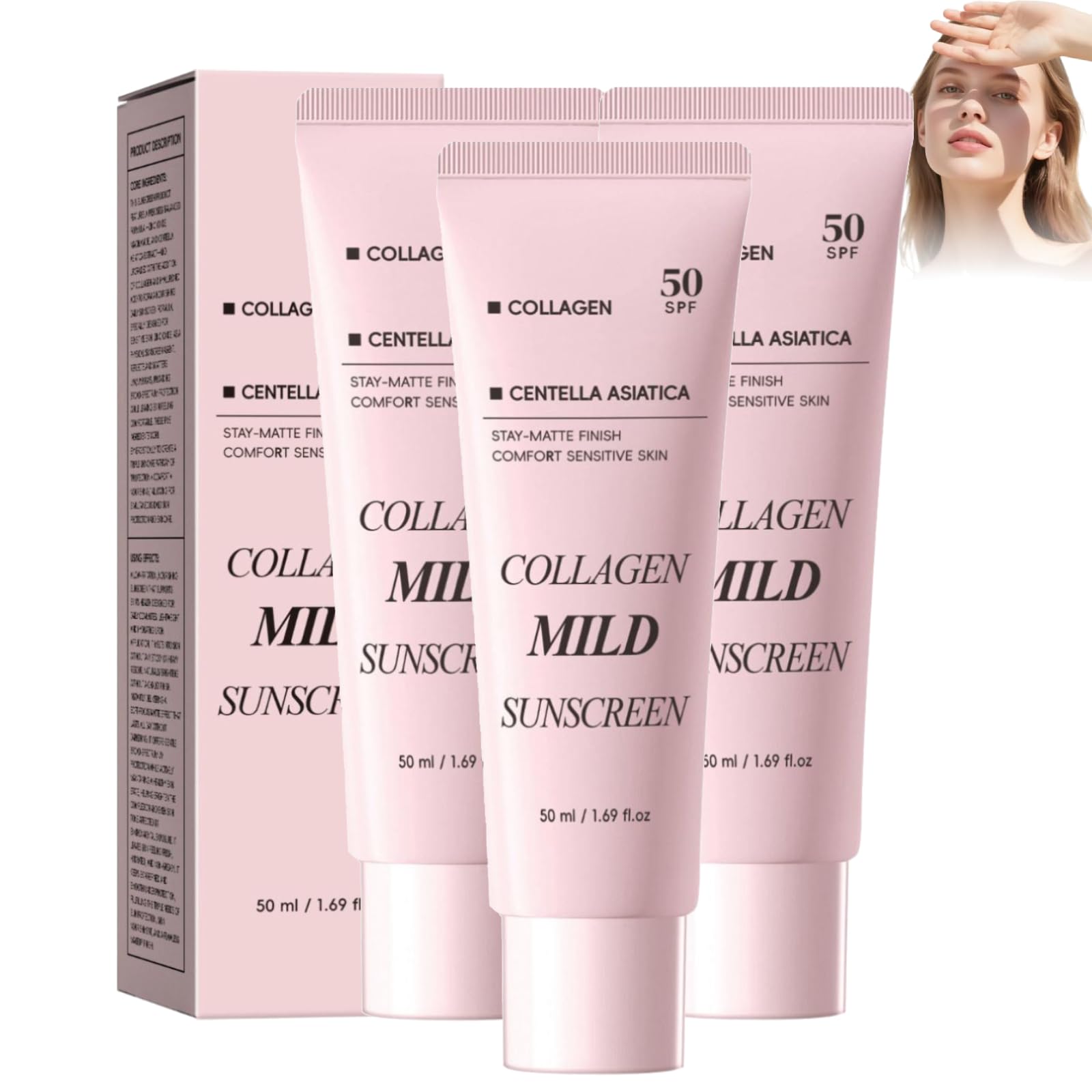 Crème Solaire Spf 50 Collagène Visage, Creme Solaire Coréenne Spf 50 Visage, Collagen Sunscreen, Crème Solaire Hydratant Anti-âge, Imperméable à L'eau, Avec Protection Uva Uvb, Léger Et Hydratant (3)