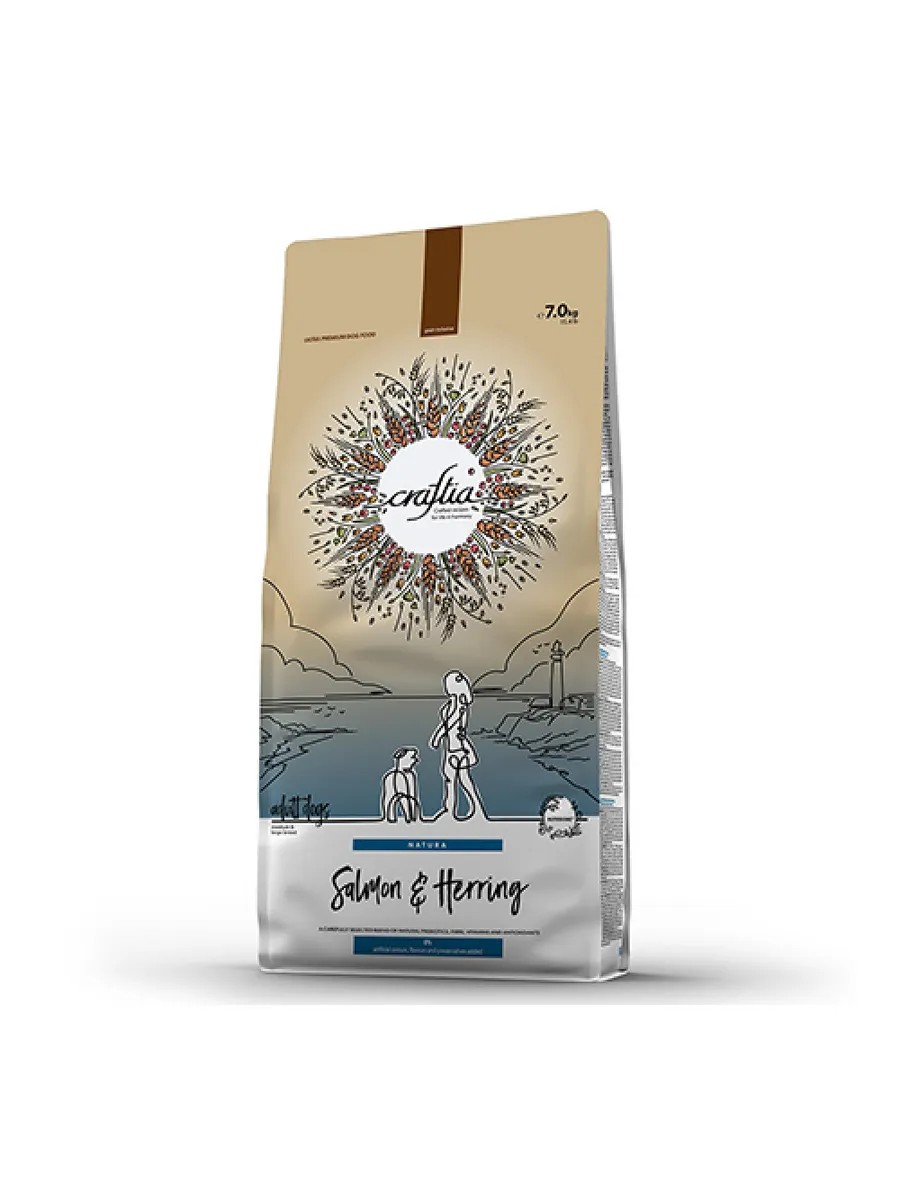 Craftia Natura Dog Adult Medium & Large Breed Salmon & Herring / Craftia dry food for adult dogs of medium and large breeds with salmon and herring.