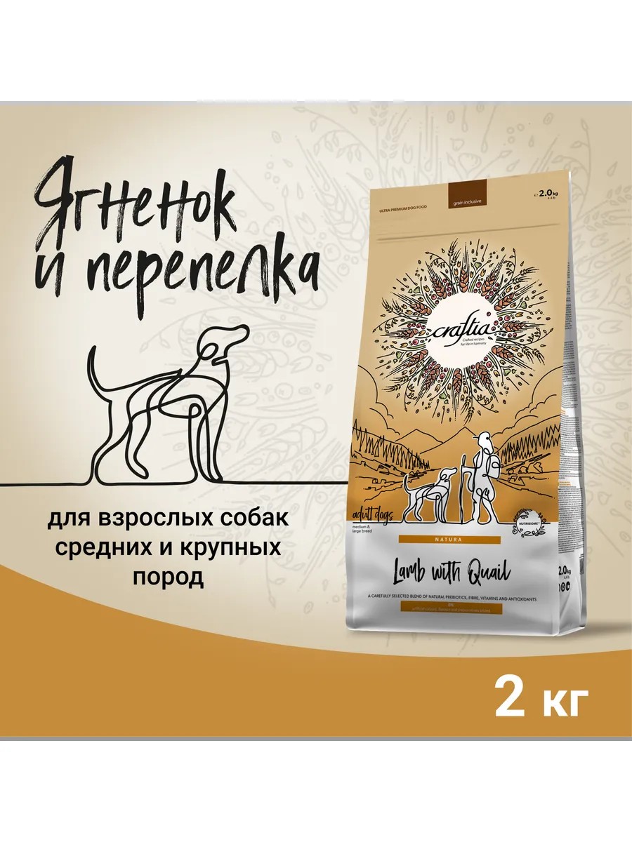 CRAFTIA Сухой корм CRAFTIA NATURA для взрослых собак средних и крупных пород из ягненка с перепелкой 2 кг