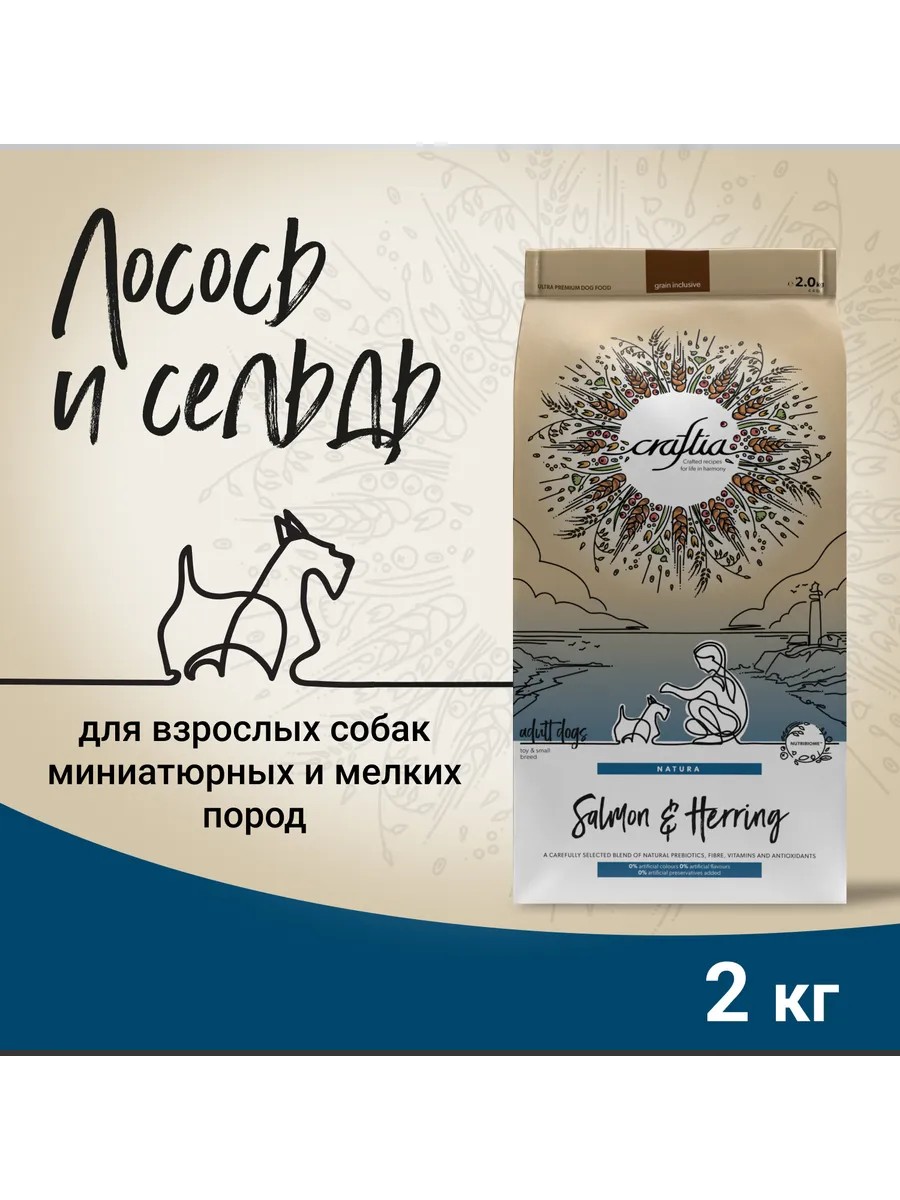 CRAFTIA Сухой корм CRAFTIA NATURA для взрослых собак миниатюрных и мелких пород из лосося с сельдью 2 кг