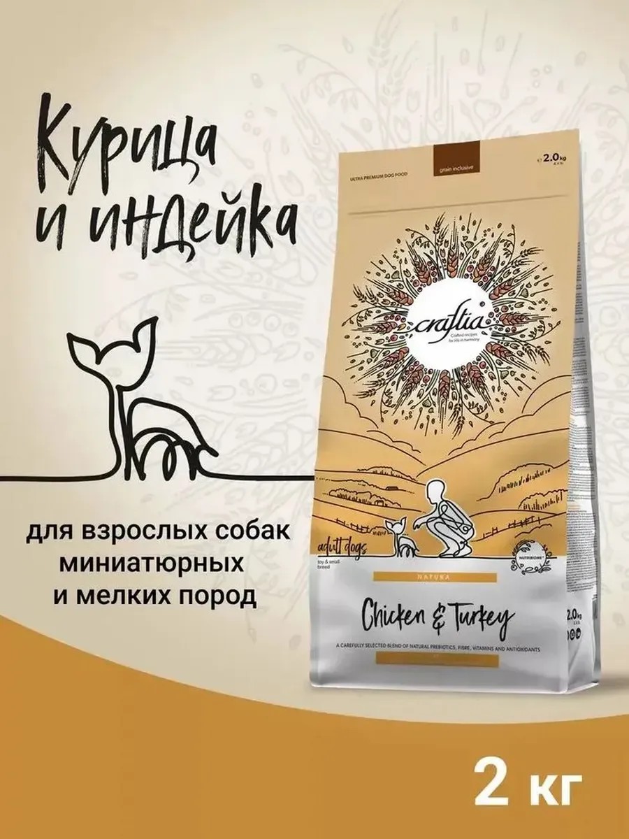 | Полное наименование товара | CRAFTIA NATURA сухой корм для взрослых собак миниатюрных и мелких пород из курицы и индейки 2кг |