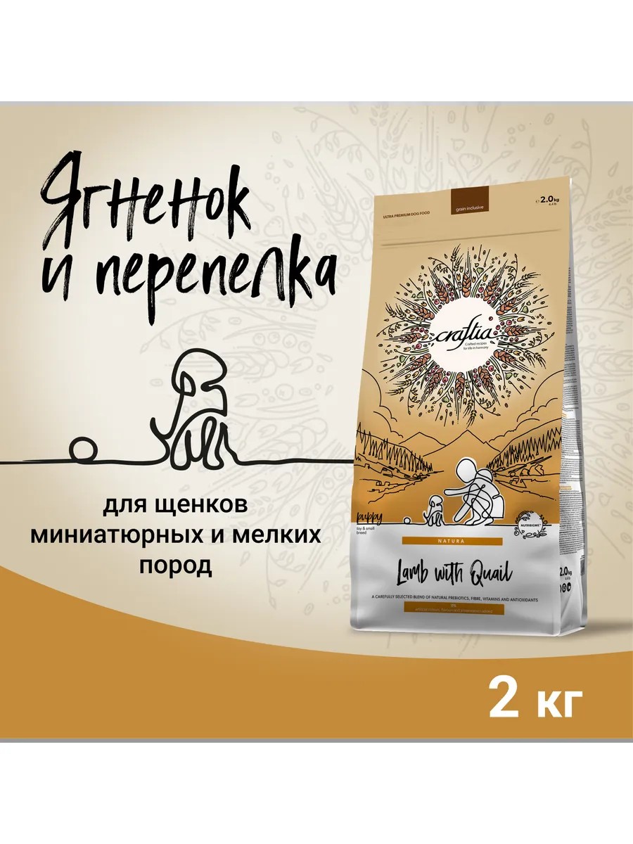 CRAFTIA Сухой корм CRAFTIA NATURA для щенков миниатюрных и мелких пород из ягненка с перепелкой 2 кг