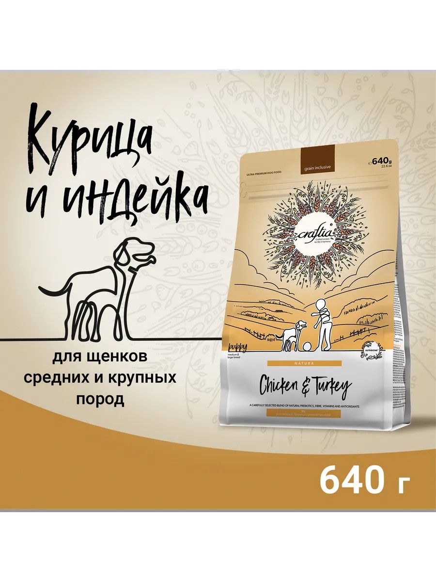 CRAFTIA Сухой корм CRAFTIA NATURA для щенков средних и крупных пород из курицы и индейки 640 г