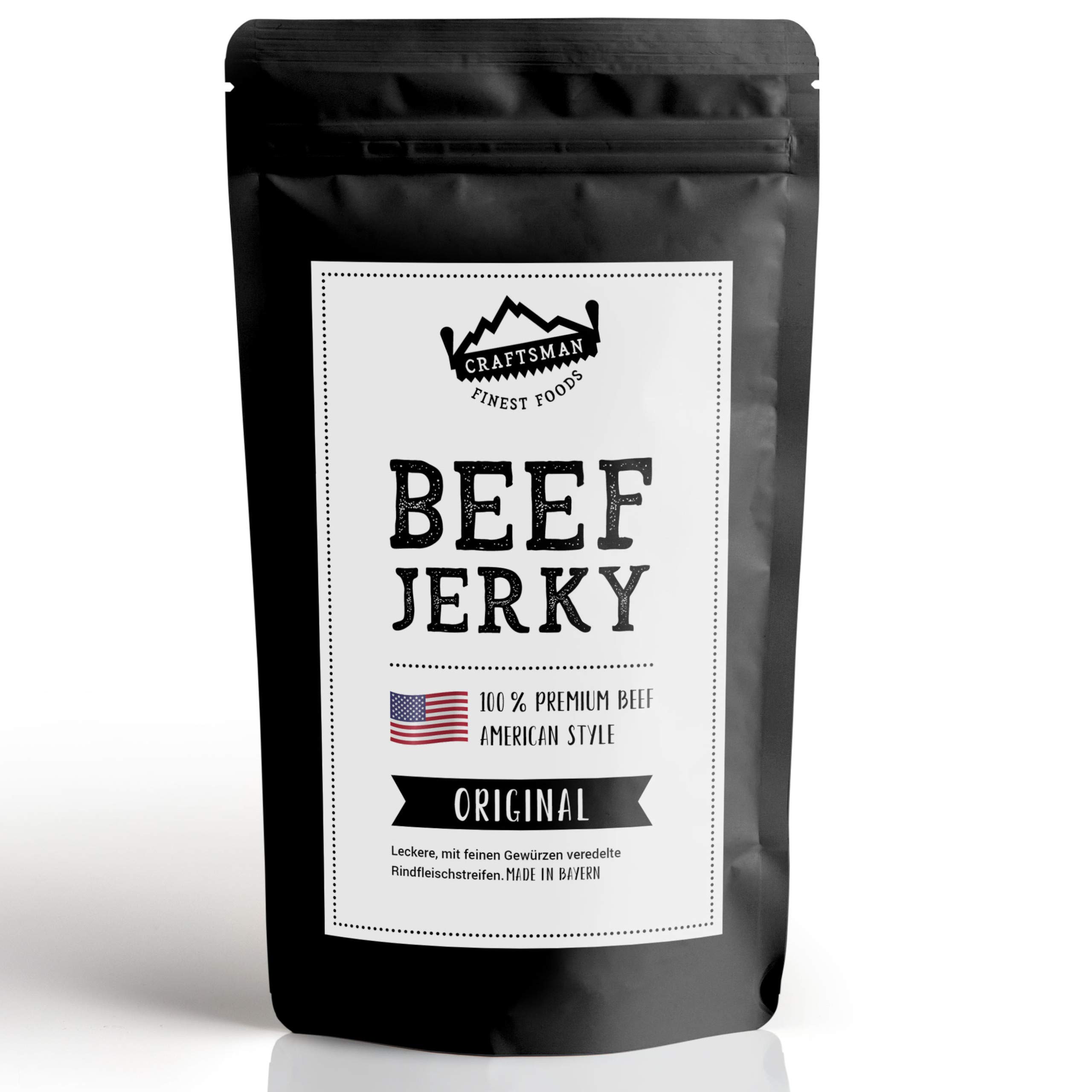 Beef jery - dried meat set 5 x 50g (250g) Craftsman American Beef Jery Original: Delicious dry meat, with fine spices and real beech wood smoke -refined strips of beef.American Beef Jerkey Made with a lot of love in Bavaria. You want a pure beef jerky without much frills and pure meat enjoyment?!Then the Craftsman Beef Jery Original is just the thing for you.The premium dry meat is only flavored.So you tasted perfectly the fresh beef taste (pasture children from Bavaria).The fine spices and the beech wood smoke refine the Jerky Beef in a very special way and give it a great tasty note. The American Beef Jery from Germany - Bavaria.Craftsman's Premium Beef Jery is made from fresh beef of Bavarian pasture in Germany.We only use the best ingredients. Ingredients beef jerky / dry meat original: 200g beef for 100g beef jerky, salt, apple cider vinegar, soy sauce (water, soybeans, salt, sugar, wheat flour), sugar, spices, preservatives: sodium nitrite, beech wood smoke. Ingredients / ingredients Ingredients beef jerky / dry meat original: 200g beef for 100g beef jerky, salt, apple cider vinegar, soy sauce (water, soybeans, salt, sugar, wheat flour), sugar, spices, preservatives: sodium nitrite, beech wood smoke. Instructions Light -protected and dry at room temperature Address manufacturer/importer Craftsman Foods UG (limited liability), Färberstr.27a, 86157 Augsburg More ?? Without additives: For the production of the Craftsman Premium Beef Jery, we only use selected, fine ingredients and lean premium beef from Bavaria.We produce the dry meat without flavor enhancers, without dyes and without artificial flavors.So you can enjoy the super delicious and hearty Meat snack ""Beef Jerkey Original"" from Bavaria with a clear conscience.? Beef Jery Original: Delicious dry meat, with fine spices and real beech smoke -refined beef stripes.You want a pure beef jerky without much frills and pure meat enjoyment?!Then the Craftsman Beef Jery Original is just the thing for you.The dry meat is only flavored.So you tasted perfectly the fresh beef taste.? MEAT SNACK: Craftsman’s dry meat original is a perfect snack for everyone who likes to like it.You can enjoy the Beef Jery during work, when traveling, hiking, sports or comfortably on the couch.The dry meat is very protein -rich (high protein) and therefore also ideally suited as a snack.? Manufacture: Our American Beef Jery Original is made from the best beef (upper and lower shell) in premium quality.The lean meat is marinated with our seasoning mix (own recipe) and then dried gently.It is also smoked in our smokehouse with real beech wood.Liquid smoke (Liquid Smoke) does not take place.Regional production - Made in Germany - Made in Bavaria.? TOP quality: Our Craftsman American Beef Jery are made with a lot of love and passion.For the Jerkys we use the best and very lean meat from Bavarian pastures.The cattle graze in the immediate vicinity to our butcher shop, in which also slaughtered and the beef jerky is produced.A real 100% regional product.The fine and natural spices ensure the special taste of the dry meat. Beef Jerky - Trockenfleisch Set 5 x 50g (250g) Craftsman American Beef Jerky ORIGINAL: Leckeres Trockenfleisch, mit feinen Gewürzen und echtem Buchenholzrauch veredelte Rindfleischstreifen. American Beef Jerkey mit viel Liebe hergestellt in Bayern. Du willst ein reines Beef Jerky ohne viel Schnick Schnack und puren Fleischgenuss?! Dann ist das Craftsman Beef Jerky Original genau das Richtige für Dich. Das Premium Trockenfleisch wird nur dezent gewürzt. So schmeckst Du perfekt den frischen Rindfleischgeschmack (Weiderinder aus Bayern). Die feinen Gewürze und der Buchenholzrauch veredeln das Jerky Beef auf ganz besondere Weise und geben ihm eine super tasty Note. Das American Beef Jerky aus Deutschland - Bayern. Craftsman's Premium Beef Jerky wird aus frischem Rindfleisch bayerischer Weiderinder in Deutschland hergestellt. Dabei verwenden wir nur beste Zutaten. Zutaten Beef Jerky / Trockenfleisch Original: 200g Rindfleisch für 100g Beef Jerky, Salz, Apfelessig, Sojasoße (Wasser, Sojabohnen, Salz, Zucker, Weizenmehl), Zucker, Gewürze, Konservierungsstoff: Natriumnitrit, Buchenholzrauch. INHALTSSTOFFE / ZUTATEN Zutaten Beef Jerky / Trockenfleisch Original: 200g Rindfleisch für 100g Beef Jerky, Salz, Apfelessig, SOJASOßE (Wasser, SOJABOHNEN, Salz, Zucker, WEIZENMEHL), Zucker, Gewürze, Konservierungsstoff: Natriumnitrit, Buchenholzrauch. GEBRAUCHSANWEISUNG Lichtgeschützt und trocken bei Raumtemperatur ANSCHRIFT HERSTELLER/IMPORTEUR Craftsman Foods UG (haftungsbeschränkt), Färberstr. 27a, 86157 Augsburg Mehr?? OHNE ZUSÄTZE: Für die Herstellung der Craftsman Premium Beef Jerky verwenden wir nur ausgesuchte, feine Zutaten und mageres Premium Rindfleisch aus Bayern. Das Trockenfleisch produzieren wir dabei OHNE Geschmacksverstärker, OHNE Farbstoffe und OHNE künstliche Aromen. So kannst du den super leckeren und herzhaften Meat Snack „Beef Jerkey Original“ aus Bayern mit gutem Gewissen genießen. ? BEEF JERKY ORIGINAL: Leckeres Trockenfleisch, mit feinen Gewürzen und echtem Buchenrauch veredelte Rindfleischstreifen. Du willst ein reines Beef Jerky ohne viel Schnick Schnack und puren Fleischgenuss?! Dann ist das Craftsman Beef Jerky Original genau das Richtige für Dich. Das Trockenfleisch wird nur dezent gewürzt. So schmeckst Du perfekt den frischen Rindfleischgeschmack. ? MEAT SNACK: Craftsman’s Trockenfleisch Original ist ein perfekter Snack für alle, die es gerne herzhaft mögen. Du kannst das Beef Jerky während der Arbeit, auf Reisen, beim Wandern, beim Sport oder ganz gemütlich auf der Couch genießen. Das Trockenfleisch ist sehr proteinreich (High Protein) und somit auch ideal als Zwischenmahlzeit geeignet. ? HERSTELLUNG: Unser American Beef Jerky Original wird aus bestem Rindfleisch (Ober- und Unterschale) in Premium Qualität hergestellt. Das magere Fleisch wird mit unserer Würzmischung (eigene Rezeptur) mariniert u