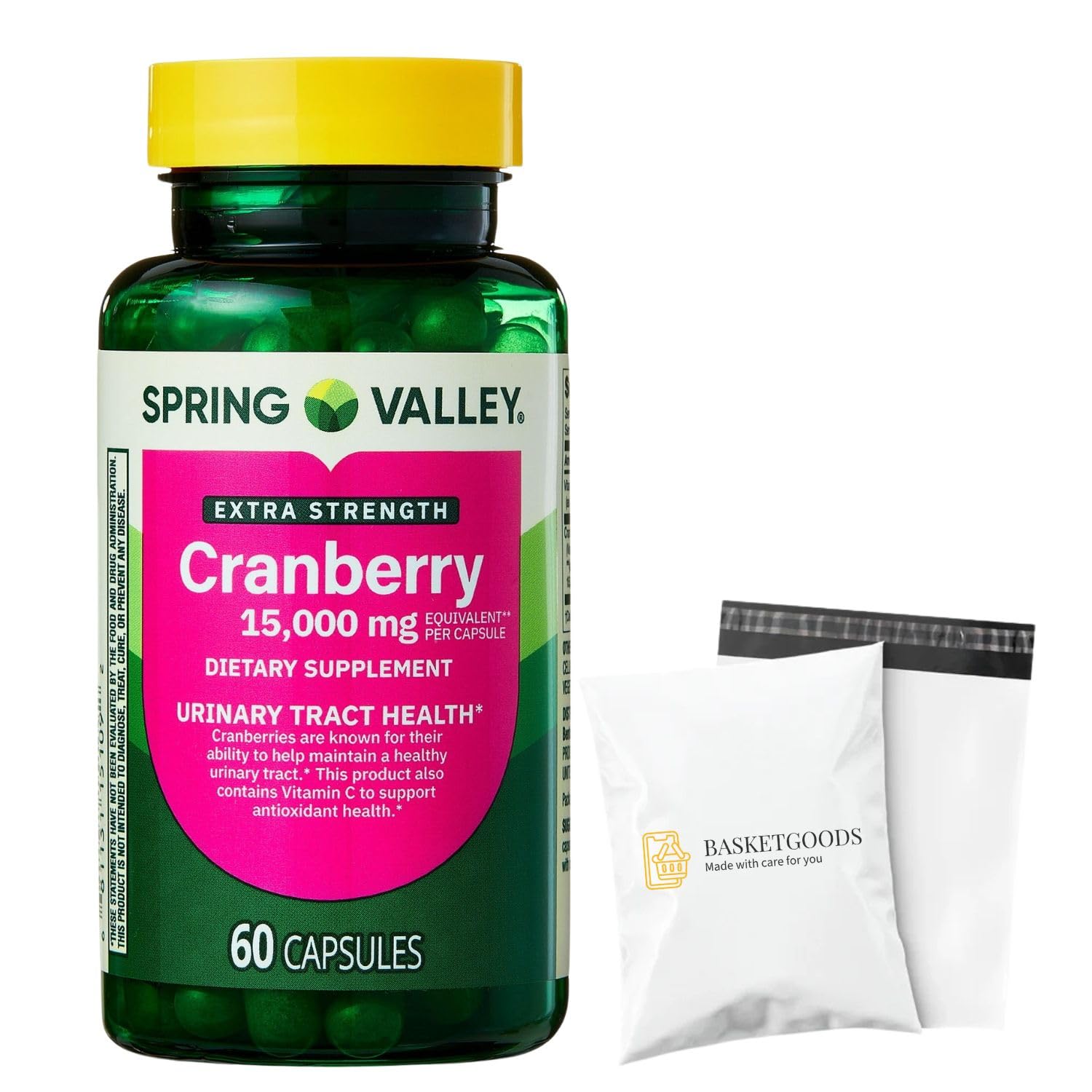 Cranberry Supplements for Women. Spring Valley Extra Strength Cranberry Dietary Supplement Capsules 15 000mg 60 Ct - Set by Basket Goods
