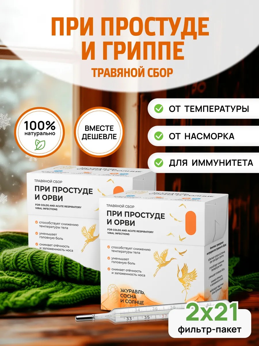 Журавль сосна и солнце Чай от простуды и гриппа, травяной сбор 2 уп