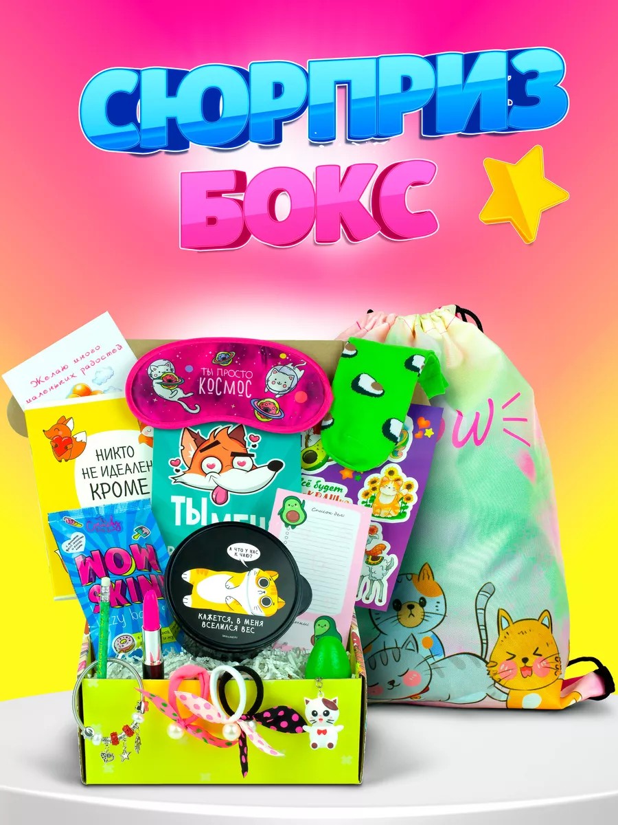 Attention! See the photo gallery for the contents of each surprise box for girls. The gift set includes many fun items that will delight a girl's heart. These items are sure to be used not only at home but also at school. The bright gift box in which the surprise box is packaged adds a festive and celebratory atmosphere. We carefully assemble each children's gift set by hand and wrap everything in gift paper! It's perfect as a gift set for a girl or a gift set for a friend. Many of our customers also thank us after giving a gift set to a sister or niece. We recommend giving this gift set to a girl aged 7 and up. At this age, this surprise gift will be especially appealing, and you're likely to hear a delighted cry upon presentation! But remember, when choosing, consider your child's interests. For example, some prefer a stationery set, others a beauty box for girls, and others a combination of both. Most of our clients give surprise gifts to girls for their birthdays, March 8th, or when visiting. A distinctive feature of the gift sets we assemble are secret elements that create an air of mystery and enigma, allowing the surprise box to unfold gradually. Please note that buying a ready-made surprise gift is much more cost-effective than assembling it yourself, because you won't overpay for each item in the set; you'll buy everything at once! It's crucial for us that the surprise box matches the interests of the recipient. In addition to standard surprise boxes, we also assemble beauty boxes for girls and stationery sets. Here you'll find sets with jewelry, stationery, cosmetics, and many other fun items. Find the perfect option at a price that suits your budget. Delight your princess with a wonderful New Year's gift.