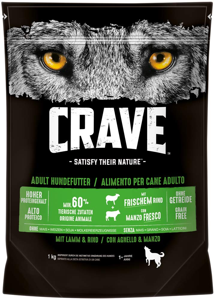 Crave Dry Dog Food for Adult Dogs 1+ with Lamb and Beef 1 Pouch (1 x 1 kg)
