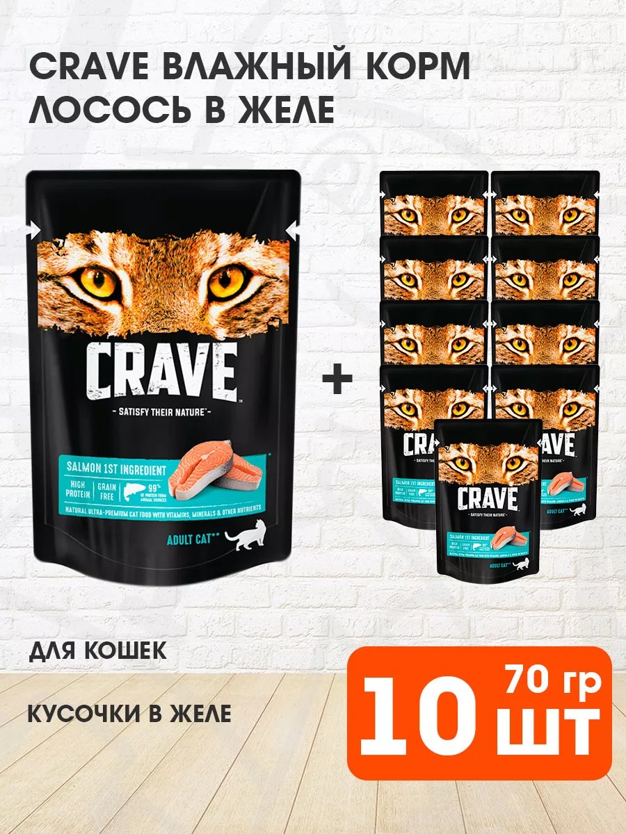 CRAVE Корм влажный для кошек лосось в желе 70 г 10 шт