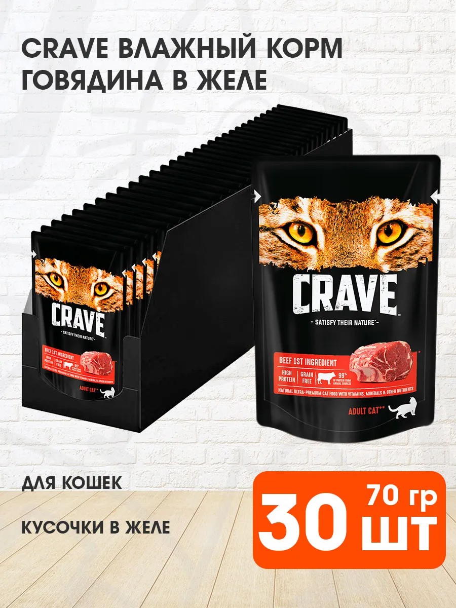 CRAVE Корм влажный для кошек говядина в желе 70 г 30 шт