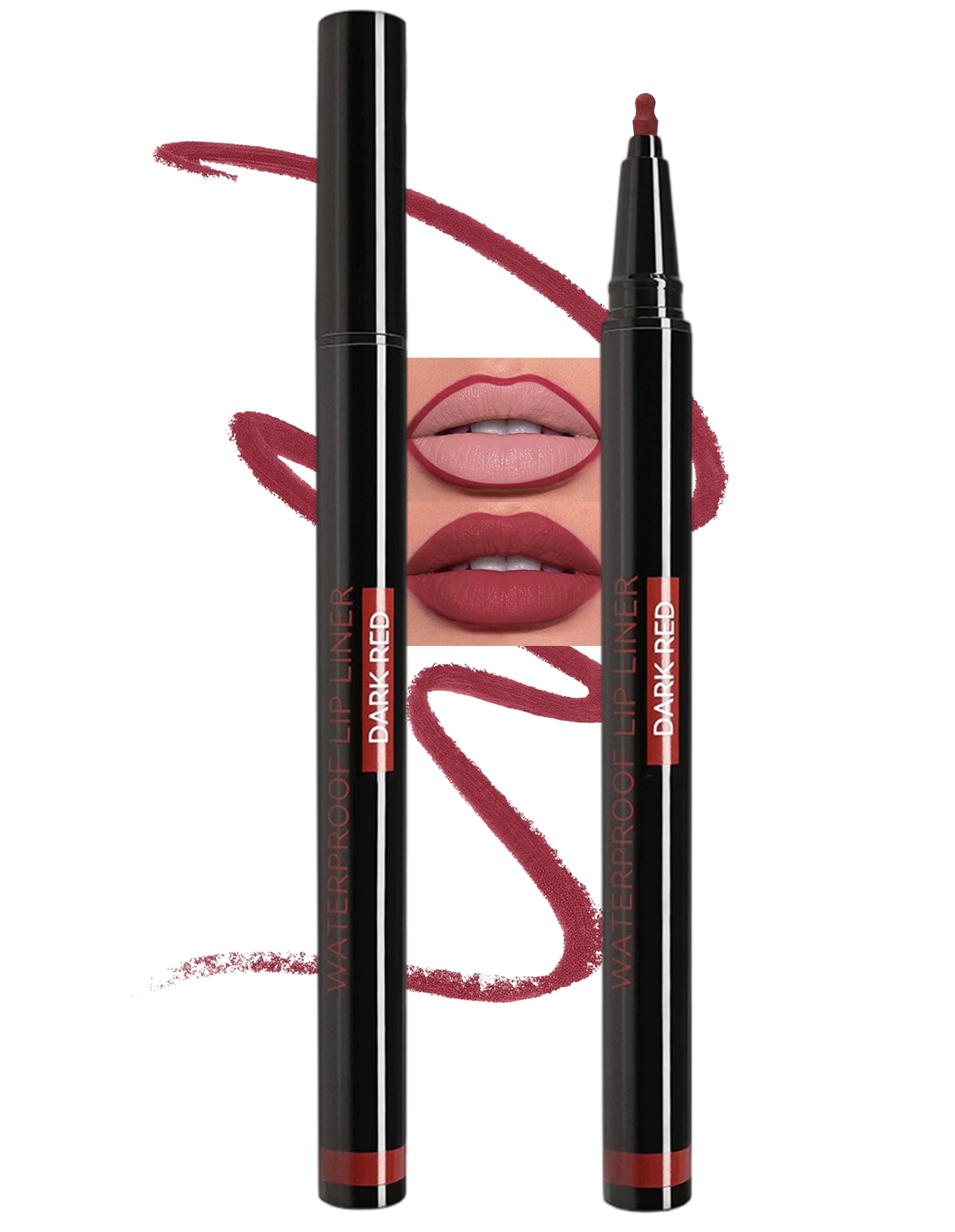 Crayon l vres imperm able - Marqueur mat - Rouge fonc - Longue dur e - Tr s pigment et soyeux - Rouge l vres naturel lisse (02 rouge fonc ) #02