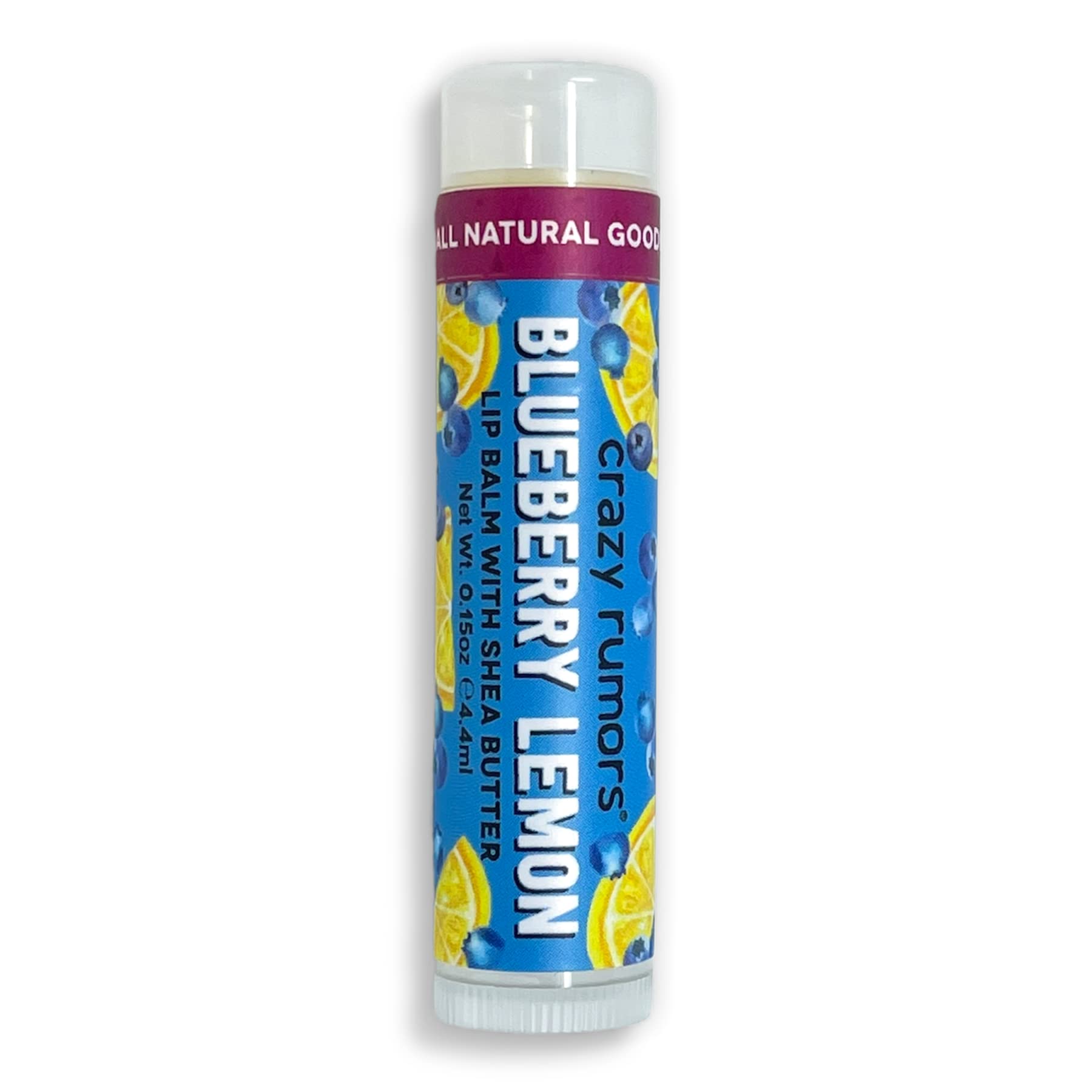 : Have you heard of Crazy Rumors? 100 natural, Vigan, ethical, and fun, the perfect lip balm exists! Who is it for? The whole family, as long as they've kept their childlike spirit! You'll love: its 100 natural and Vigan formula, its ultra-nourishing texture, its irresistible packaging that catches the eye and becomes indispensable, its blueberry smoothie scent, and its story, because it was a young couple who created Crazy Rumors in Brooklyn, New York. Their challenge: to create a perfect lip balm that surprises. Mission accomplished! How to use: Summer or winter, hydrate and protect your lips! Crazy Rumors offers lip balms in incredible scents: bubble gum, piña colada, banana split, pink grapefruit, lemon ginger. Once you try them, you won't be able to live without them! Ingredients Macadamia Ternifolia (Macadamia) Seed Oil, Olea Europaea (Organic Olive) Fruit Oil, Butyrospermum Parkii (Organic Shea) Butter, Euphorbia Cerifera (Candelilla) Wax, Glycine Soja (Non GMM Soybean) Wax, Simmondsia Chinensis (Jojoba) Seed Oil, Copernicia Cerifera (Organic Carnauba) Wax, Aroma (Natural Flavors), Tocopherol (Vit E) Eupatorium Rebaudianum Bertoni (Stevia) Directions Apply directly to lips if necessary. Safety Warning