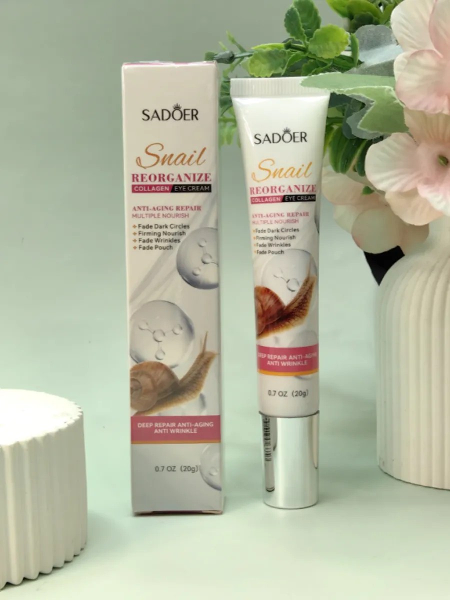Snail Mucin and Collagen Eye Cream 20g is a moisturizing and restorative product designed to improve elasticity, soften, and reduce fine wrinkles in the eye area, subject to individual tolerance to the components.