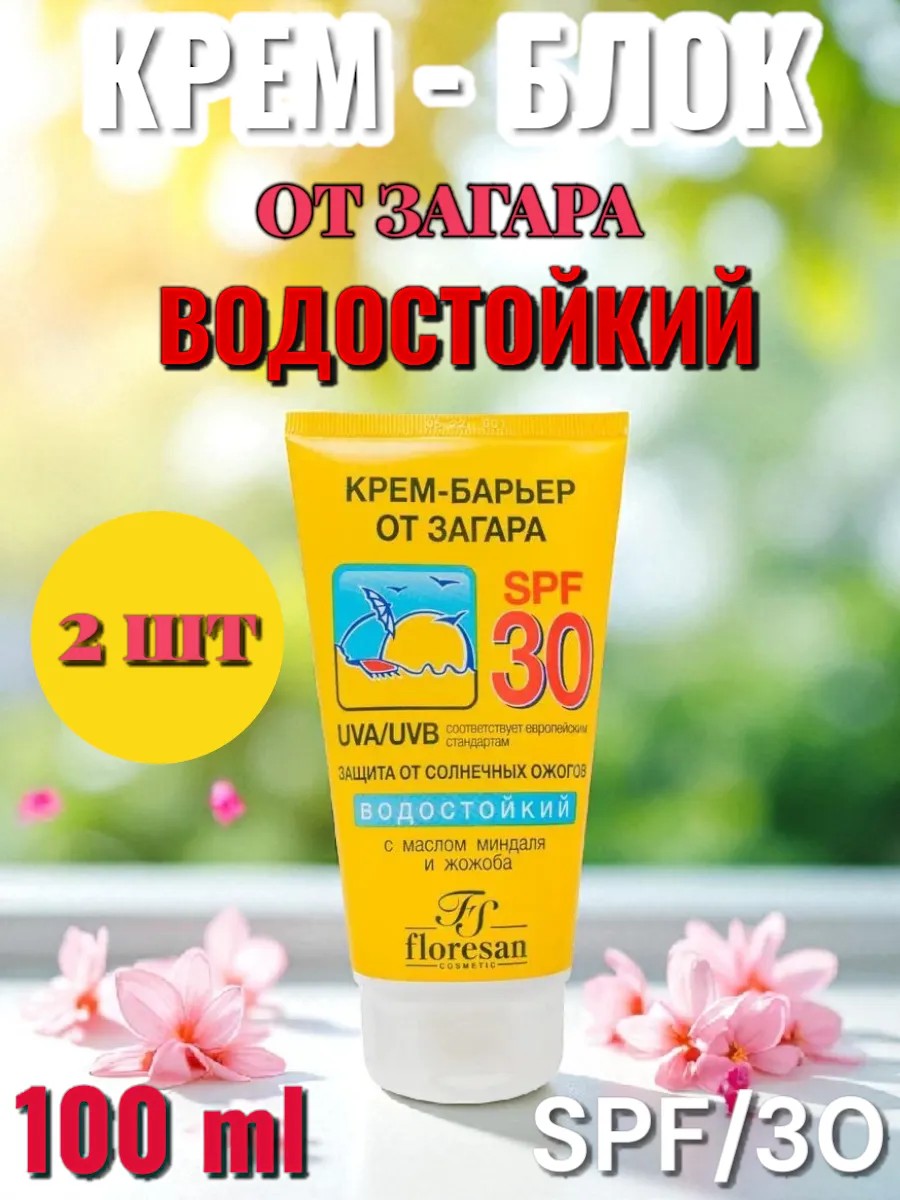 Крем-блок от загара SPF/30 водостойкий, 2 шт.