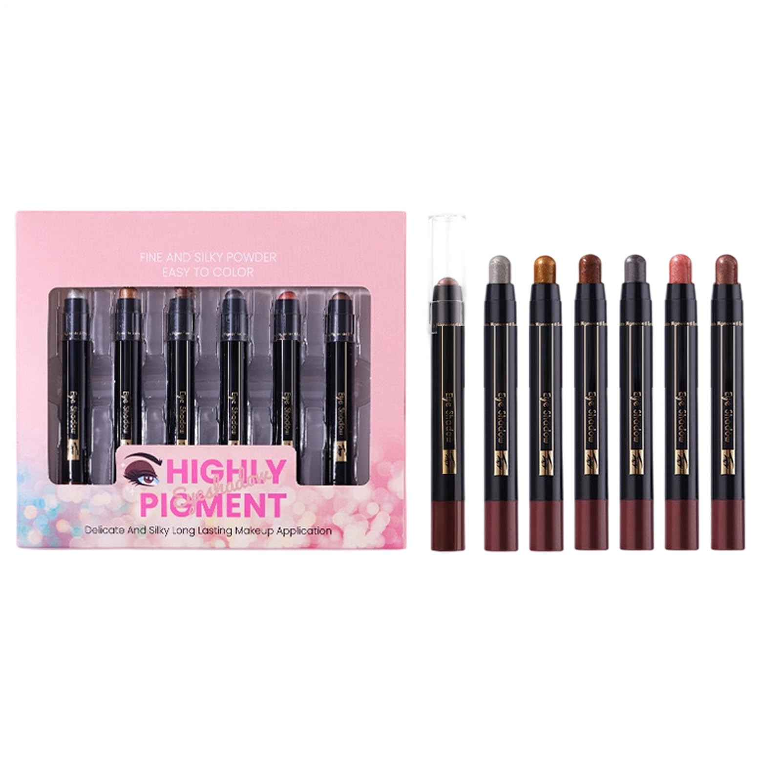 Achieve stunning eye makeup looks with this 6-pack collection of eyeshadow crayons, perfect for enhancing natural beauty. Designed with a water-resistant formula, this long-lasting makeup pencil is ideal for women and girls attending special occasions such as dates or parties. The highlighter functionality provides a radiant finish, increg your overall cosmetic appeal. A must-have in personal care, these crayons combine convenience and style for everyday elegance. Specification Net weight 1.2g 6 piece List 6 Eyeshadow Colored Crayon Note: Due to different lighting and screen settings, the item color may be slightly different from the picture. Due to different manual measurements, please allow 1-2cm difference in size.Transparent Appearance: Provides an even distribution of pearls that create a transparent glow, while guaranteeing a smooth, creamy formula that blends perfectly and adheres flawlessly for a beautiful effect. Compact size: With magnetic closure, this eyeshadow crayon stores six beautiful colors in a portable design, ideal for travel, easy storage and as a stylish gift. Ease of use: High pigment and easy to blend deliver intense shades, while the creamy texture provides waterproof, sweat-resistant and long-lasting coverage with little need for touch-ups. Shade Options: Six shades in palette enhance eye depth and highlight effortlessly, buildable to create dynamic looks adaptable from business to evening occasions. Time-Saving Technology: The built-in swivel tip eliminates extra tools, speeds up the makeup process and delivers precise detailing in addition to effortless eyeshadow transitions for a beautiful effect.Crème Oogschaduw Stift Glitter Oogschaduw Stiften Set 6 Delige Waterdichte Langdurige Gloed Crayon Cosmeticabeauty Vrouwelijke Verzorging Haal prachtige oogmake-uplooks neer met deze collectie van 6 stuks oogschaduwcrayons, perfect om natuurlijke schoonheid te versterken. Ontworpen met een waterbestendige formule, is dit langdurige make-uppotlood ideaal voor vrouwen en meisjes die speciale gelegenheden zoals afspraakjes of feestjes bijwonen. De highlighterfunctionaliteit biedt een stralende afwerking, wat je algehele cosmetische aantrekkingskracht verhoogt. Een must-have in persoonlijke verzorging, combineren deze crayons gemak en stijl voor dagelijkse elegantie. Specificatie Netto gewicht 1,2 g 6 -stuk Lijst 6 oogschaduwkleurige Crayon Opmerking: Vanwege verschillende verlichting en scherminstellingen kan de itemkleur enigszins verschillen van de afbeelding. Vanwege verschillende handmatige metingen, houd een verschil in 1-2 cm in grootte.Transparante Uitstraling: Zorgt voor een egale verdeling van pareltjes die een transparante gloed creëren, terwijl een soepele, romige formule gegarandeerd wordt die perfect mengt en vlekkeloos aanhecht voor een mooi effect. Compact formaat: Met magnetische sluiting bewaart dit oogschaduwkrijtje zes prachtige kleuren in een draagbaar design, ideaal voor op reis, eenvoudige opslag en als stijlvol cadeau. Gebruiksgemak: Hoog pigmentgehalte en makkelijk uit te smeren leveren intense tinten op, terwijl de crèmeachtige textuur waterbestendige, zweetbestendige en langdurige dekking biedt met weinig noodzaak tot bijwerken. Schaduwopties: Zes tinten in palet verbeteren oogdiepte en highlight moeiteloos, geschikt voor opbouw om dynamische looks te creëren aanpasbaar van zakelijke tot avondgelegenheden. Tijdwinst Technologie: De ingebouwde draaibare punt schaft extra tools af, versnelt het make-upproces en levert exacte detaillering naast moeiteloze oogschaduwovergangen voor een prachtig effect.