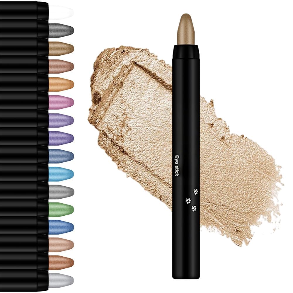 ???Cream Eyeshadow Stick, Highlighter Eyeshadow Pencil Crayon Glitter Eyeshadow Stick, Long Lasting Waterproof Eye Shadow Highlighter Stick Make Up Eyeshadow Shimmer Stick ???Specifications: Net: 2g Lenght: 11.8cm Shelf Life: 3 Years Color: #01 White, #02 Gray, #03 Black, #04 Light Khaki, #05 Brown, #06 Desert, #07 Rose, #08 Purple, #09 Violet, #10 Light Blue, #11 Dazzle Blue, #12 Green, #13 Dark Blue, #14 Mocha, #15 Gold Brown, #16 Silver ???Package Included: 1Pc*Cream Eyeshadow Stick Service Description: If you have any questions or needs about our products, please feel free to contact us. We will try our best to meet your requirements and solve your problems quickly and effectively.???Ideal Gifts? These eyeshadow pencils are easy to use. They achieve intense color, precise lining and primed lids for all day wear, also beginners can draw a perfect look. Perfect design make it a ideal gift to bring your sister,mom,and friend such surprise!. ???Save Your Makeup Time?Thick-end eyeshadow crayon for quick-applying on large area,twist-up design is so easy to apply and blend out for a quick-and-easy daytime look. Perfect for quick, easy eye looks on-the-go. ???Easy to use?Achieve flawless eye makeup in seconds with this shimmering eyeshadow stick set. Can wear alone or mix or as an eyeshadow topper to highlight and amplify your eye look. ???Silky & Conveniently?Goes on smoothly like silk without clumping,skipping or smudging,perfect for sculpting, shading & defining, not exaggerated glittery. ???Long-Lasting and Waterproof?Waterproof eyeshadow shimmer stick with highly pigmented, easy to apply and colored, waterproof smudge-proof (In the case of not rubbing), do not fade and uniform color, intense coloring lasts all day wearing.