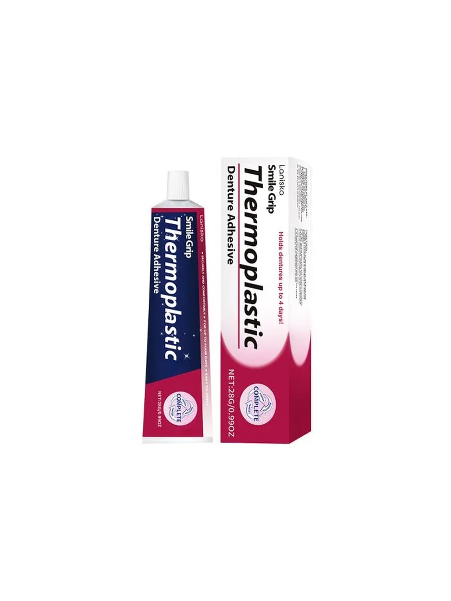 The thermoplastic formula softens the fit of the denture, reducing discomfort. Maintains denture stability, eliminating the need for frequent adjustments.