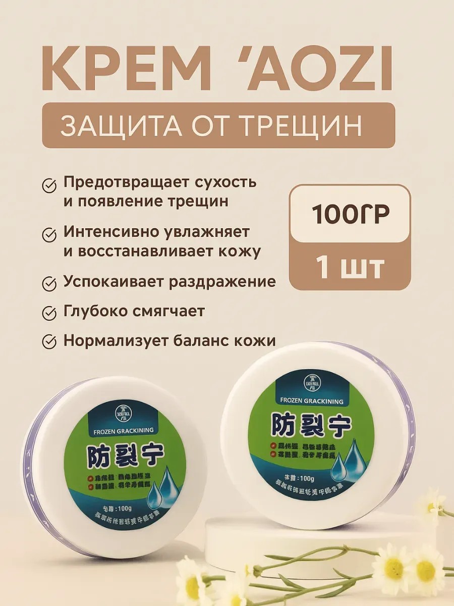 Крем AOZI (Frozen Crack Ning) создан для защиты кожи от трещин, сухости и раздражения. Интенсивно увлажняет и глубоко питает, восстанавливает кожу рук, ног, локтей и пяток. Подходит для ежедневного применения, нормализует водный баланс кожи и делает её мягкой и ухоженной.