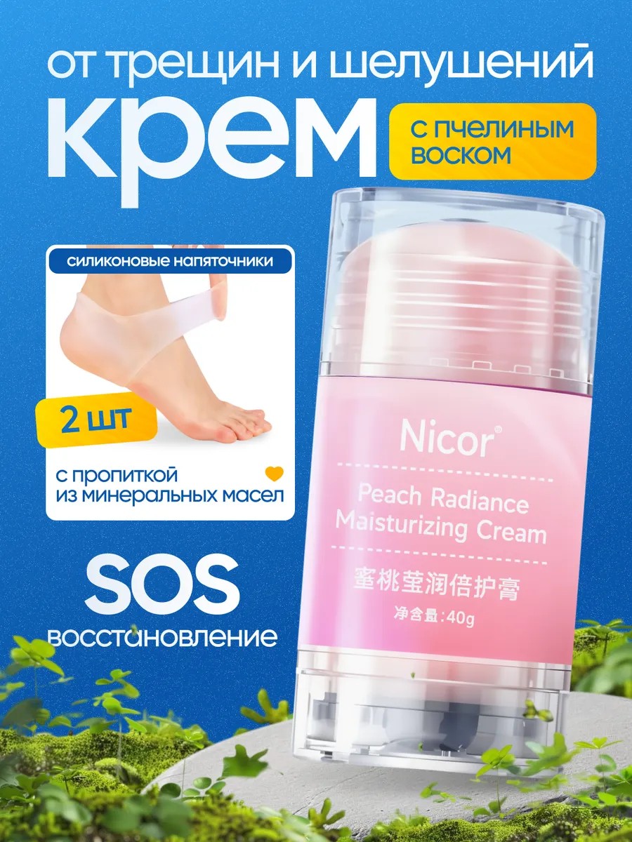 Крем от трещин и шелушений Nicor - это уникальная комбинация натуральных органичексих масел и витаминов, продукт является спасением от натоптышей, мозолей, трещин и шелушений, станет незаменимым помощником в сохранении вашей естественной красоты, а силиконовые напяточники усилят его питательные действие и сделает пятки гладкими. Подпяточник адаптируется к форме вашей стопы, обеспечивая мягкость и защиту, что позволит вам наносить крем стик с пчелиным воском не только вечером, но и днем.