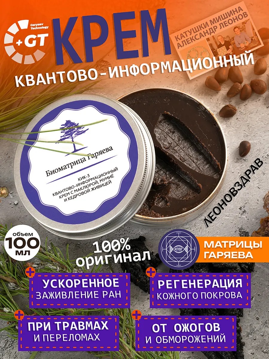 КВАНТОВО-ИНФОРМАЦИОННЫЙ КРЕМ КИК-3 П.П.ГаряеваВ Институте Лингвистико-Волновой Генетики, в лаборатории «Биоквант», под руководством доктора биологических наук, академика РАМТН, РАЕН, МАНЭБ, номинанта Нобелевской премии в области медицины 2021г., Петра Петровича Гаряева, на основе принципов передачи и хранения квантовой информации, была разработана технология получения косметических кремов, способствующих оздоровлению и приостановлению процессов старения организма.