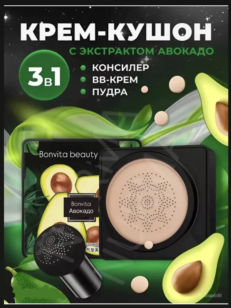 Кушон - крем с экстрактом авокадо, bonvita beauty - превосходная альтернатива классической тональной основе, вв и сс-крему.