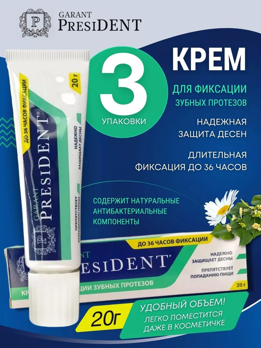 President Крем Президент Гарант для зубных протезов 20г 3 упаковки