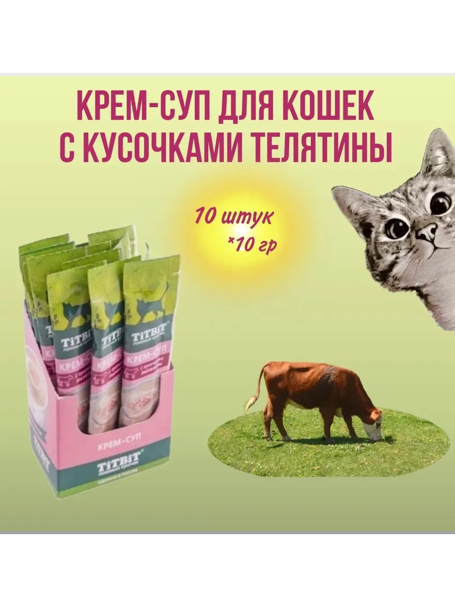 Крем-суп для кошек с кусочками телятины Титбит 10 г х 10 шт