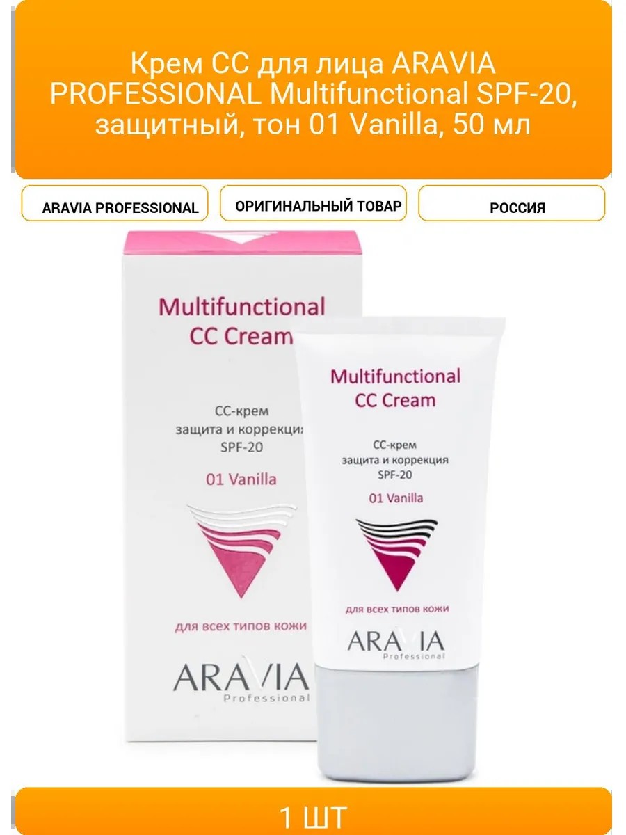 | Комплектация | Крем СС для лица ARAVIA PROFESSIONAL Multifunctional SPF-20, защитный, тон 01 Vanilla, 50 мл |