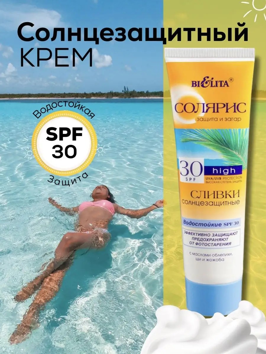 BELITA Сливки солнцезащитные водостойкие SPF30 Солярис Белита