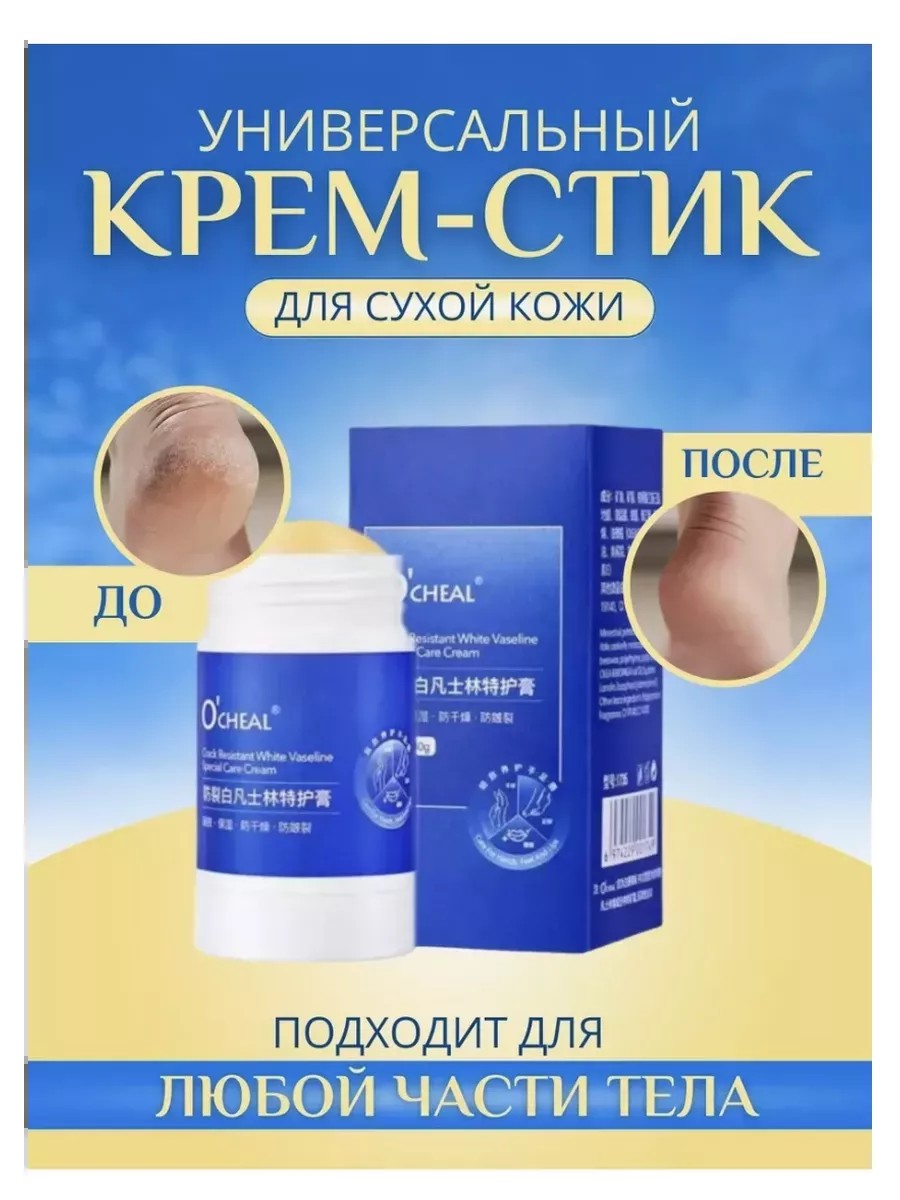 This moisturizing cream for dry skin on hands and feet effectively heals cracked heels and rough elbows. The wax cream moisturizes, heals, and nourishes dehydrated and chapped skin. The silky, smooth texture of the wax ointment penetrates deep into the epidermis, infusing it with emollients. Skin becomes smooth, velvety, and less prone to cracking and peeling. The restorative cream formula contains organic ingredients, oils, and lipids that create a protective film on the skin, preventing further damage. Similar to a dry deodorant, this soft Vaseline formula has a subtle, pleasant fruity scent. The nourishing balm is easily absorbed and is neither greasy nor sticky. The convenient, leak-proof, and durable format makes it easy to take with you on the go. This anti-cracked heel cream offers high-quality care and ease of use. The stick unscrews and applies easily to the skin, eliminating the need to dirty your hands. HOW TO USE: Cleanse the skin before use. It's recommended to soak your feet in a foot bath with apple cider vinegar. Apply the required amount of ointment to dry skin. The nourishing balm can also be used as an express skin restoration treatment.