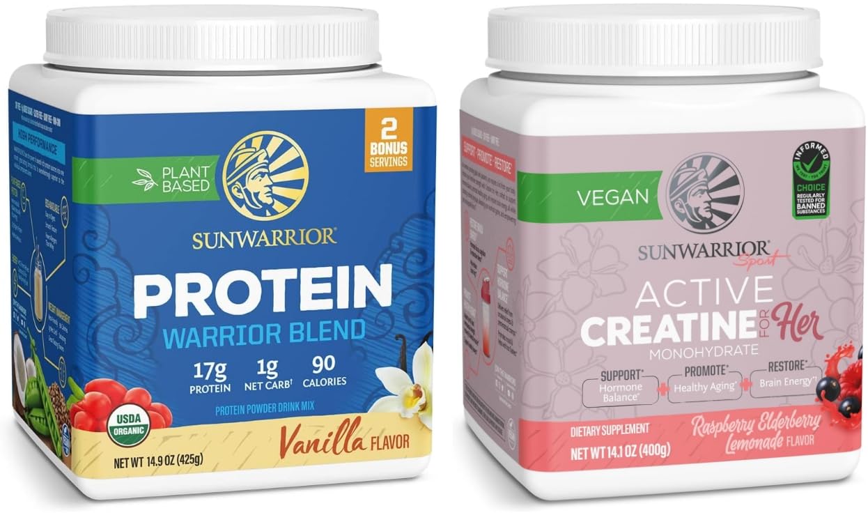 Our Guarantee: Sunwarrior has your best health in mind with every ingredient we acquire because we know you deserve clean, quality products with no shortcuts designed for the Active Warrior in you. Simple Clean Ingredients: Time to ditch those traditional formulas with hidden fillers, artificial additives potential allergens and embrace truly clean formulas that work as hard as you do. Our Top Priority: We aim to provide the cleanest, highest-quality ingredients in our products which is why we utilize an ISO-Certified, third-party lab to conduct all our heavy metals micros testing. Results You Can See: Creatine for women can help build muscles in the right places all while sculpting a graceful physique, elevating your workout game, and empowering your unstoppable force. Warrior Blend: Our organic vegan protein powder is packed with muscle-nourishing amino acids and energizing medium chain triglycerides in an easy to digest bioavailable creamy blend.