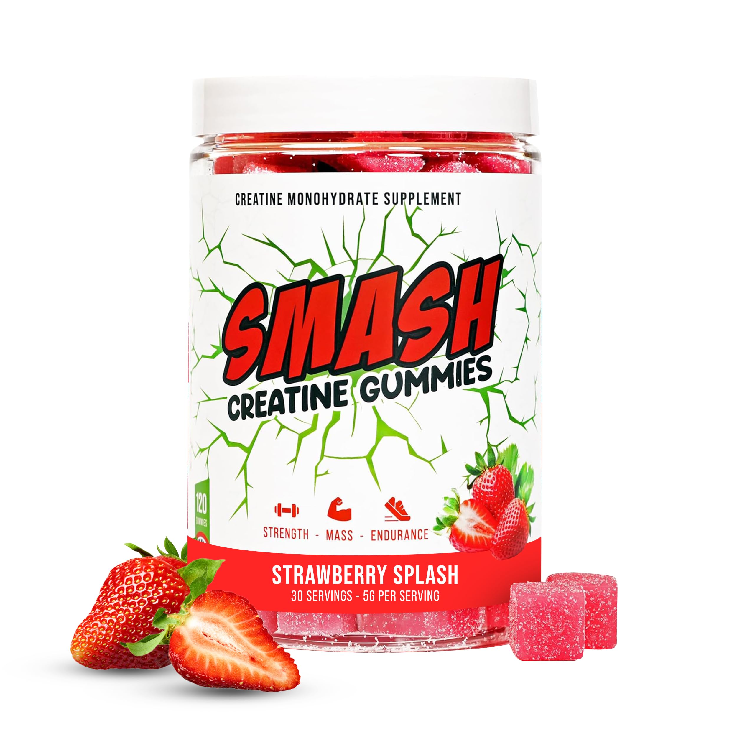 MADE IN THE USA THIRD-PARTY TESTED: Manufactured in GMP NSF certified facilities using high-quality ingredients from trusted sources. Every batch of our gummies are subjected detailed third-party testing to ensure purity, potency, and performance you can count on. DELICIOUS GUMMIES IN 3 FRUIT FLAVORS: Smash Creatine Gummies are available in Watermelon, Strawberry, and Blue Raspberry flavors. Enjoy all the benefits of creatine without the hassle of powders or mixing—just convenient, on-the-go nutrition. No more mixing, shaker bottles or powder mess. RAPID ABSORPTION FOR MAXIMUM RESULTS: Smash gummies maximize creatine absorption by providing better bio-availability, enhancing creatine delivery for quicker and more efficient results for your body. ENHANCE COGNITIVE FUNCTION MEMORY: Smash Creatine Gummies provide a potent 5g dose of creatine monohydrate per serving, scientifically shown to improve strength, endurance, and brain function—especially cognitive performance and working memory. . BUILD LEAN MUSCLE, STRENGTH RECOVERY: Each serving of Smash Creatine Gummies helps boost athletic performance by increg muscle energy production, enabling you to gain strength, exercise harder, recover quicker, and boost your gains.