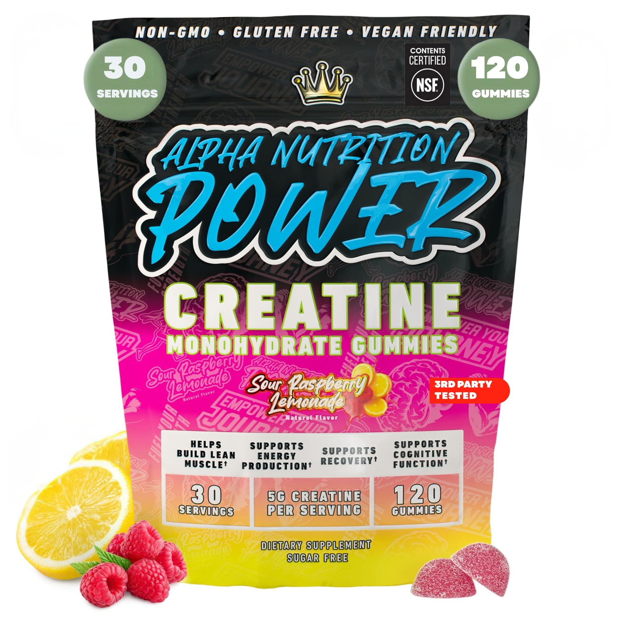 Hydration Muscle Recovery – Creatine helps draw water into muscle cells, keeping them hydrated and volumized for better performance and recovery. This process may also aid in reducing muscle soreness, helping you bounce back faster between workouts. Supports Brain Cognitive Health – More than just a workout supplement, creatine plays a key role in brain energy production. It may support memory, focus, and mental clarity, making it a great choice for students and professionals. Boosts Strength Endurance – Creatine enhances ATP production, the body's natural energy source, helping you lift heavier, train harder, and sustain energy for longer workouts. Ideal for high-intensity training, weightlifting, and endurance sports. 1.25g Creatine Per Gummy – Each gummy contains a third-party tested dose of 1.25g creatine monohydrate, the most researched form of creatine for muscle performance. Support your strength, endurance, and recovery with an easy-to-take supplement that fits seamlessly into your routine. Delicious Convenient – Enjoy the refreshing taste of sour raspberry lemonade in a hassle-free gummy. No more messy powders or hard-to-swallow pills—just chew and go. Perfect for travel, the gym, or anytime you need a healthy snack.